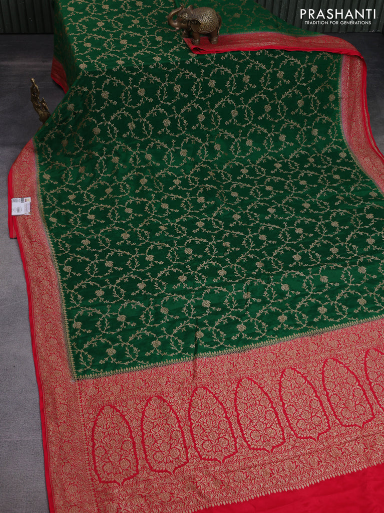 Banarasi crepe saree green and red with allover thread & zari weaves and woven border