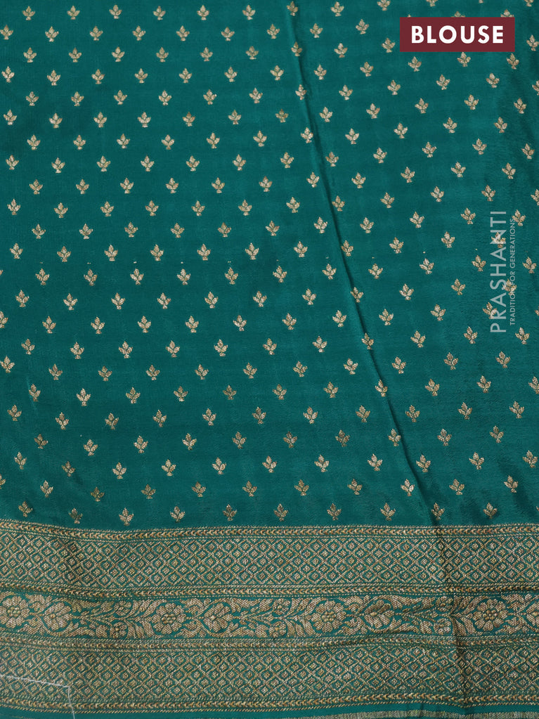Banarasi crepe saree green and peacock blue with allover geometric zari weaves and woven border
