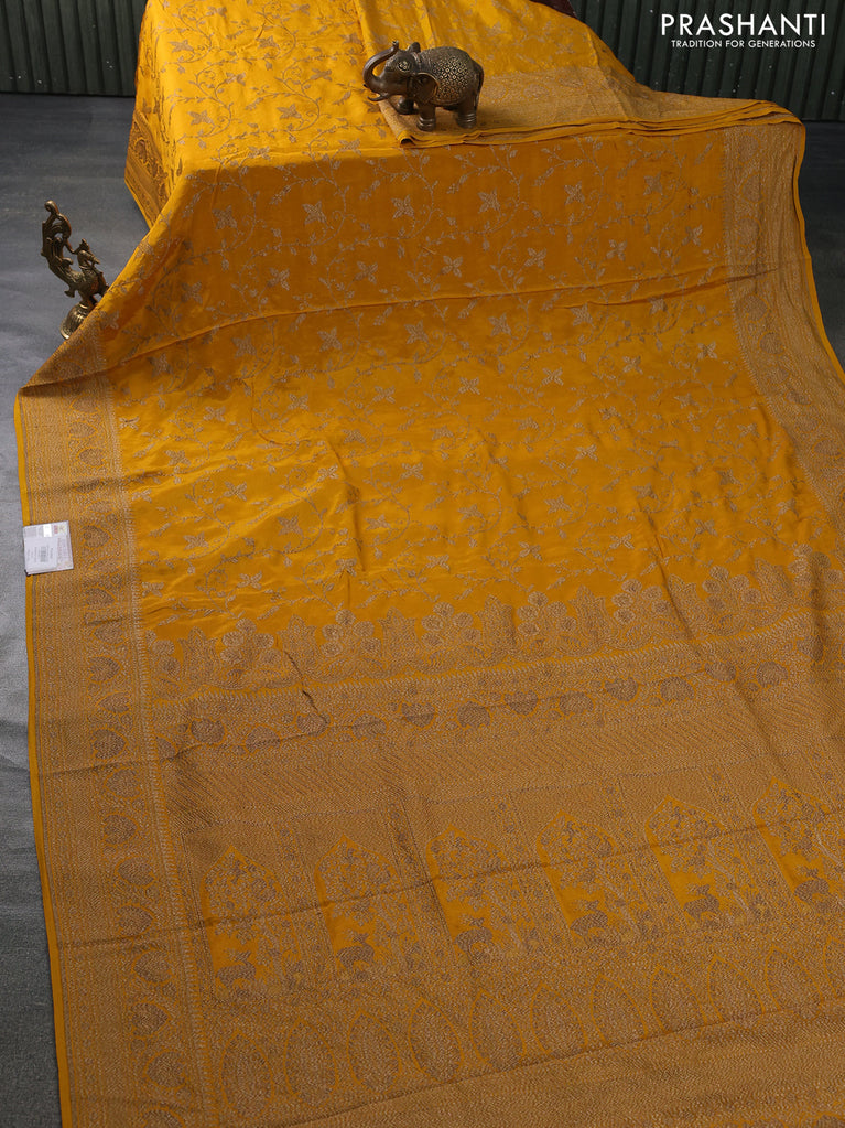 Banarasi crepe saree mango yellow with allover thread & zari weaves and woven border
