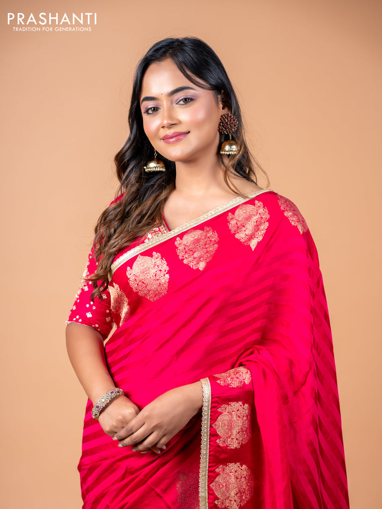 Banarasi crepe saree magenta pink with allover thread & zari geometric weaves and woven border