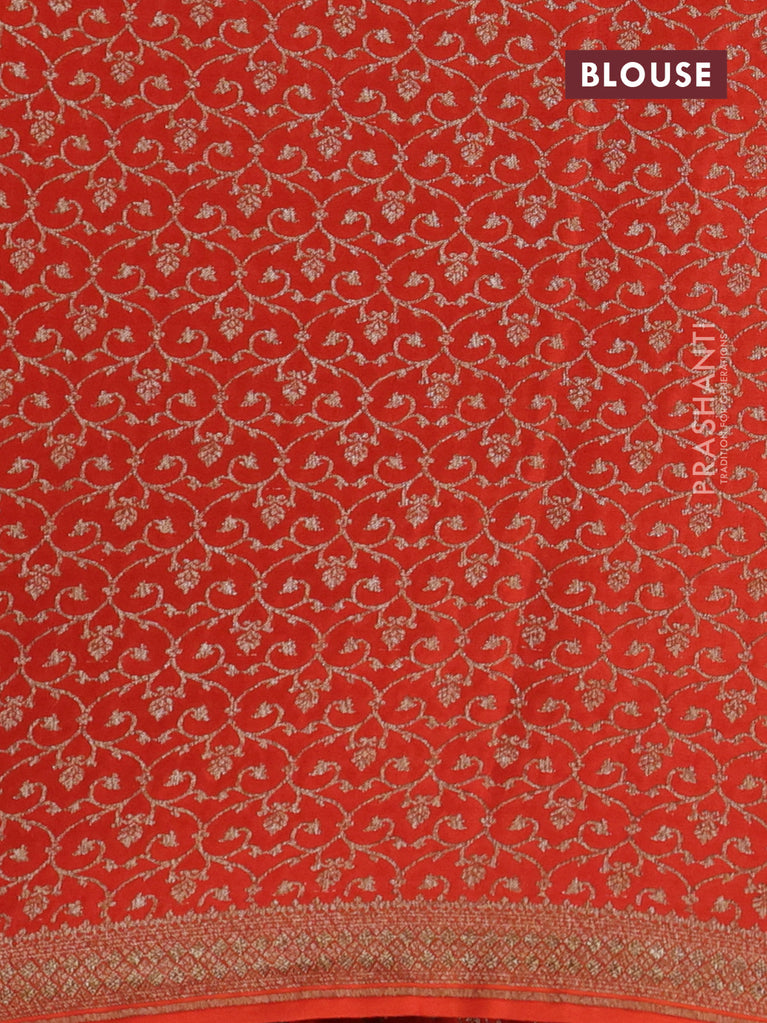 Banarasi crepe saree orange with allover thread & zari geometric weaves and woven border