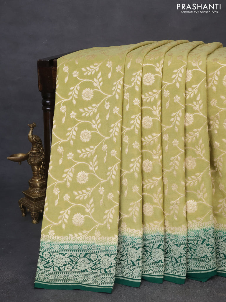 Banarasi crepe saree lime green with allover thread & zari weaves and woven border