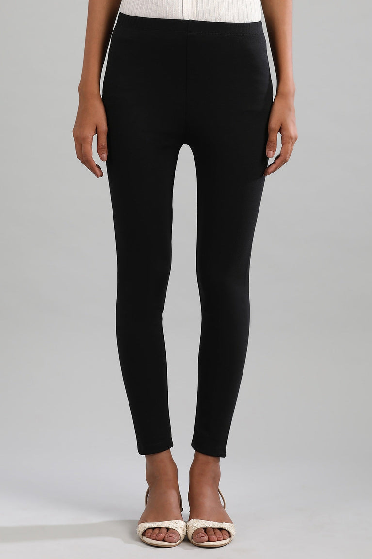 Black Striped Skinny Fit Cotton Tights With High Waistband