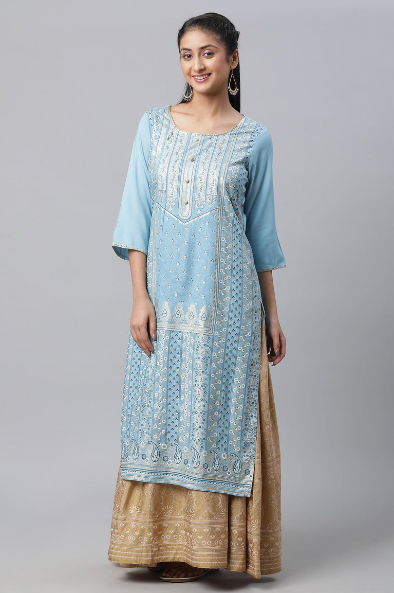 Blue Everyday Printed Straight Kurta