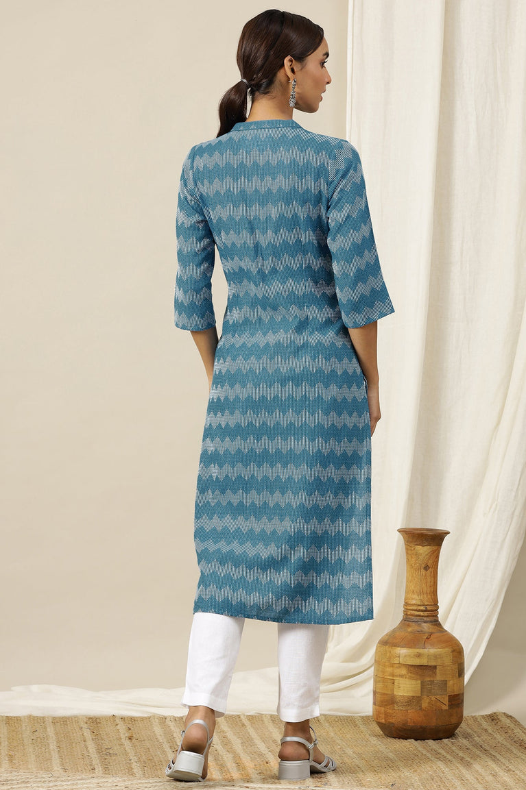For Your Comfy And Stylish Summer Look, We Have Got You This Pretty And Elegant Blue Geometric Print Kurta By Aurelia. The Kurta Has Band Collar With Button Placket.