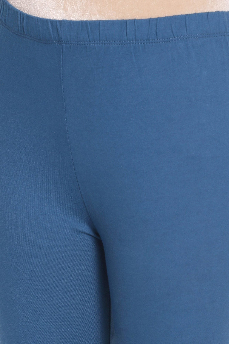 Blue Solid Cotton Lycra Stretchable Tights in Mid-Rise