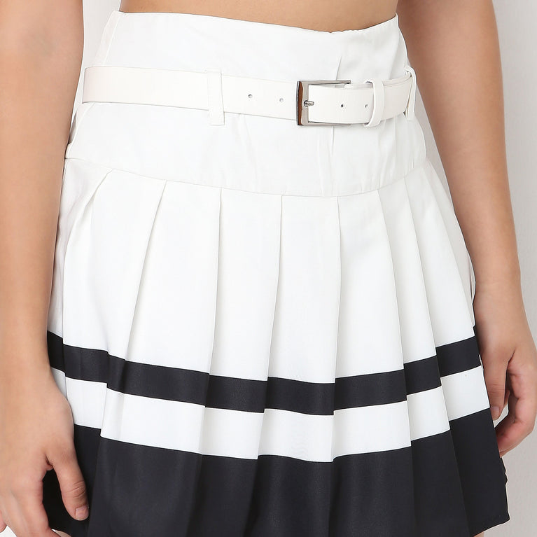 Womens Flare Fit Pleated Short Skirt Along With A Belt
