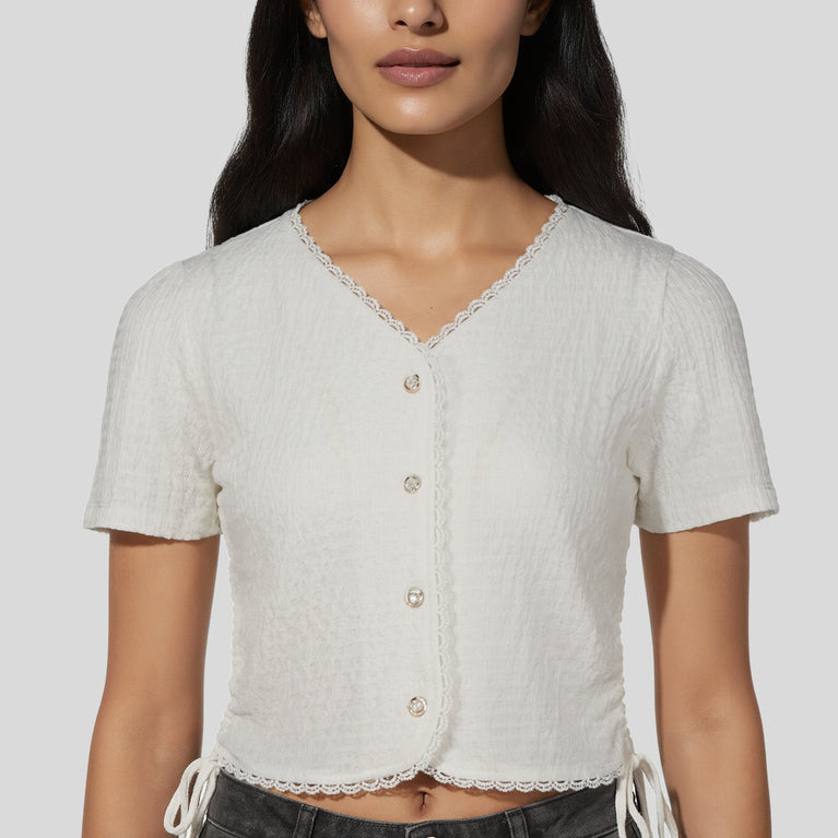 Style this crop top with high-waisted jeans for a trendy look that’s perfect for casual outings or weekend brunches.