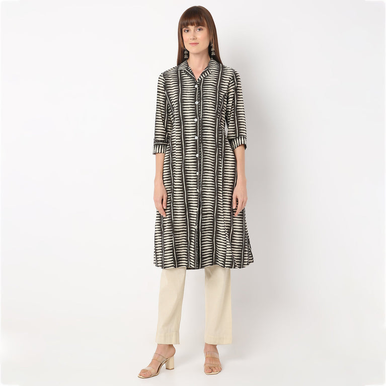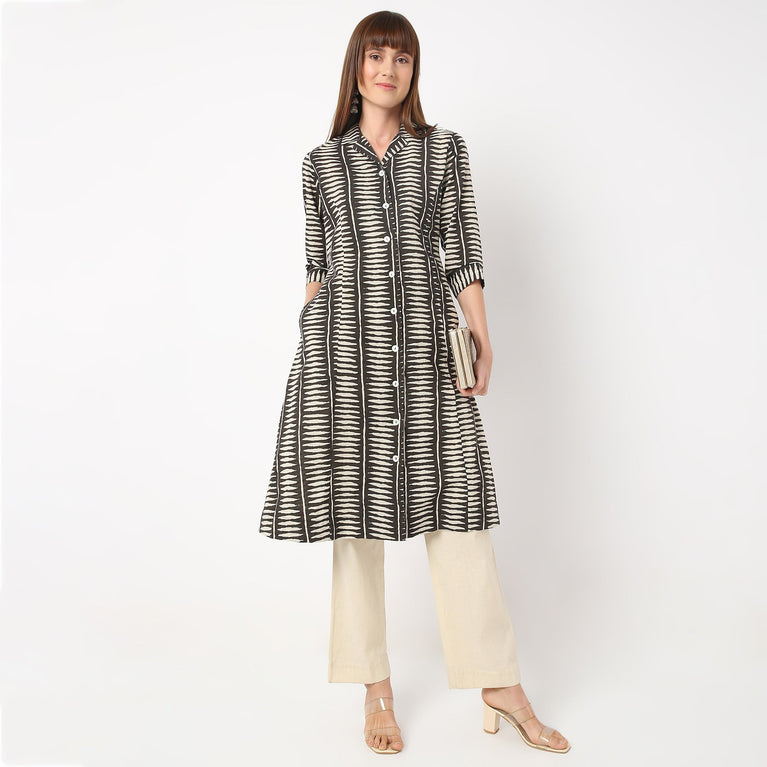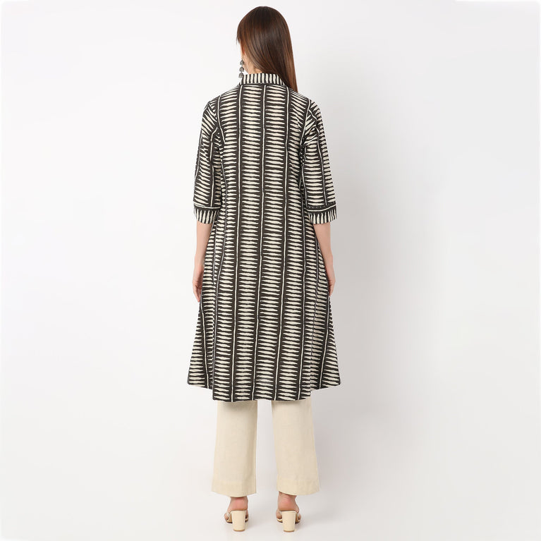 A-Line Printed Knee Length V-Neck Flared Kurta
