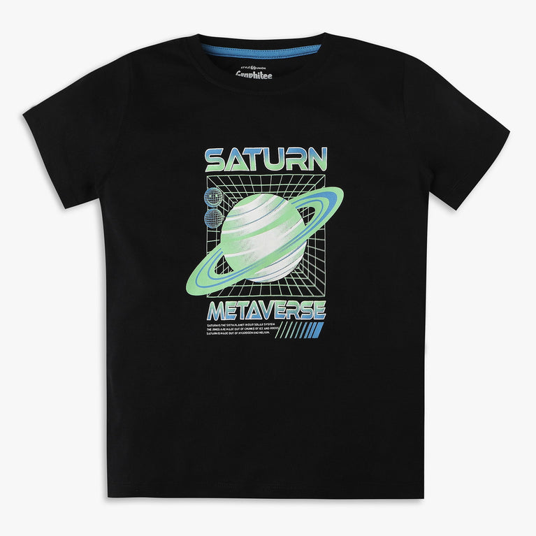 These graphic t shirt theme, graphic pattern t-shirt has crew neck and half sleeve. Made from cotton, your kid's feel comfortable wearing the product.