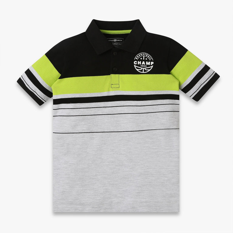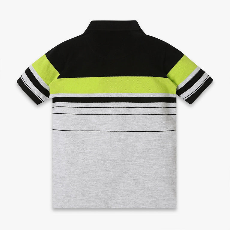 These cut and sew pattern t-shirt has polo neck and half sleeve. Made from cotton, your kid's feel comfortable wearing the product.
