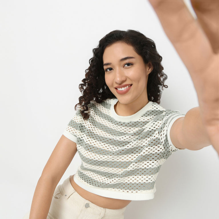 Betty Cropped Boxy Fit Fashion Tee With Half Sleeve