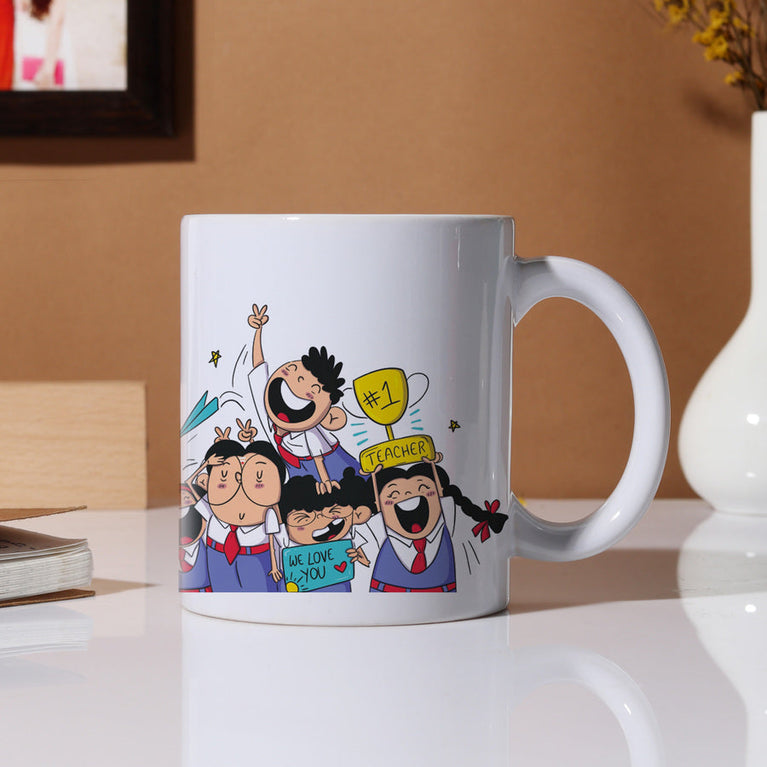 If you solemnly and truly believe that your favourite Teacher is the bestest best teacher on earth and you would want him/her to know it – then this mug is the perfect Teacher’s day gift!Specifications:Content on Mug - You're the best teacher in the world!Capacity of the Mug - 330mlThe mug is microwave safe.