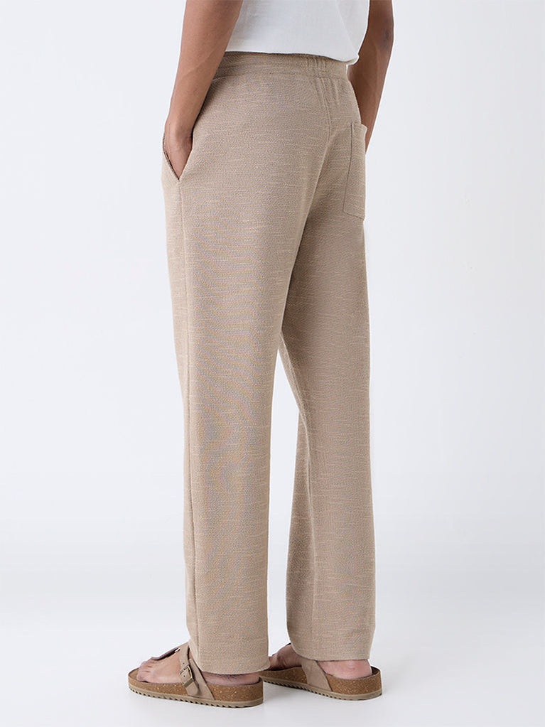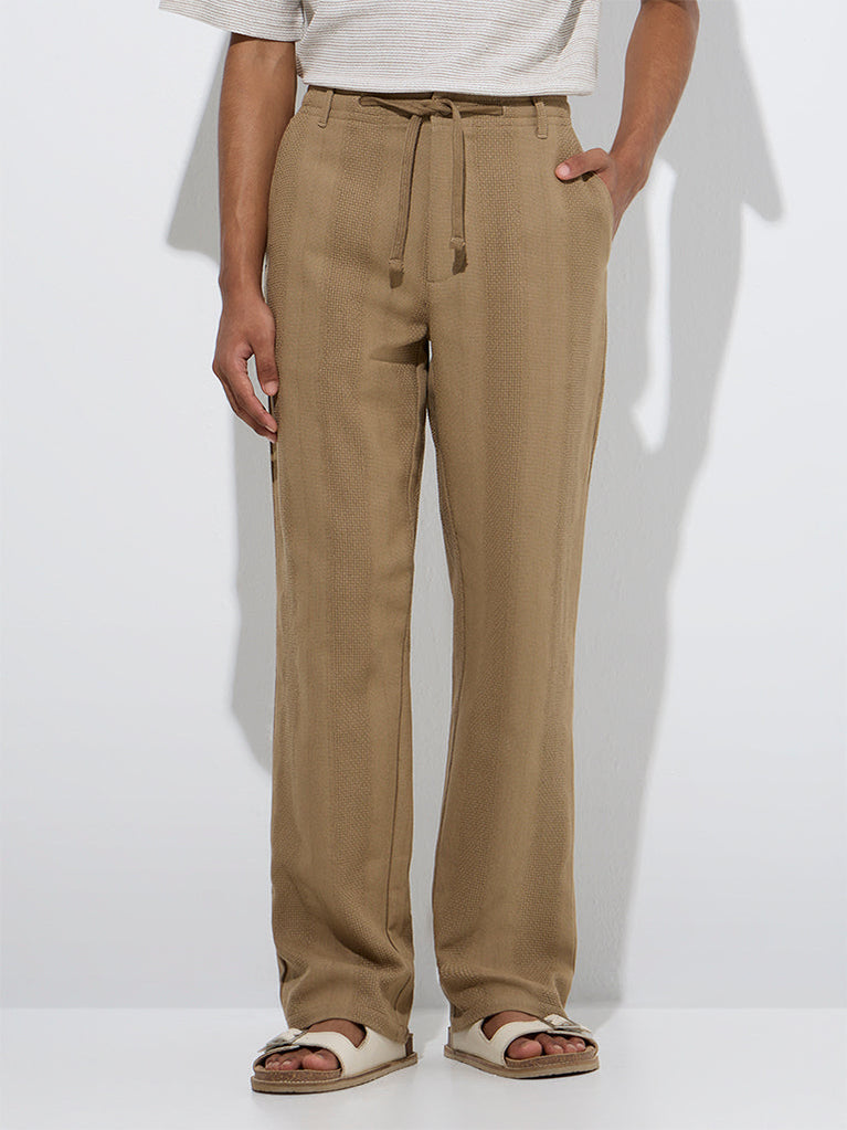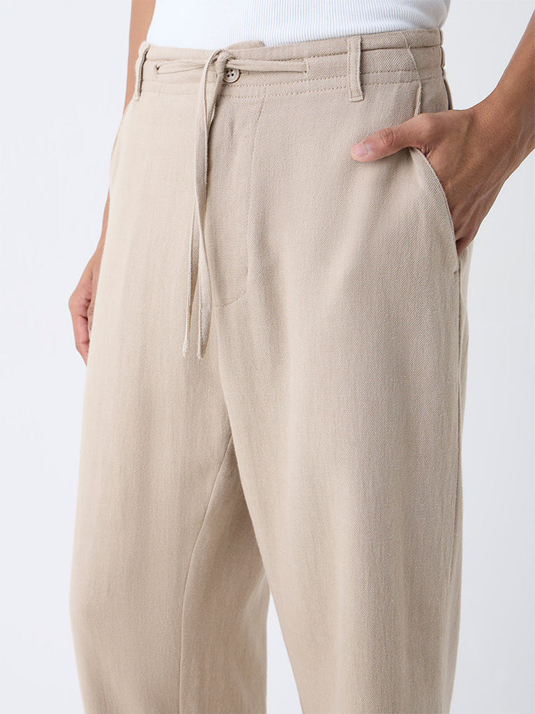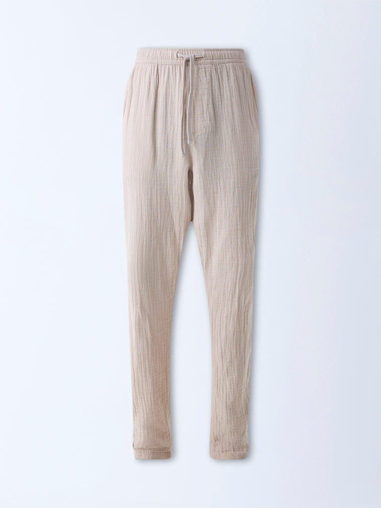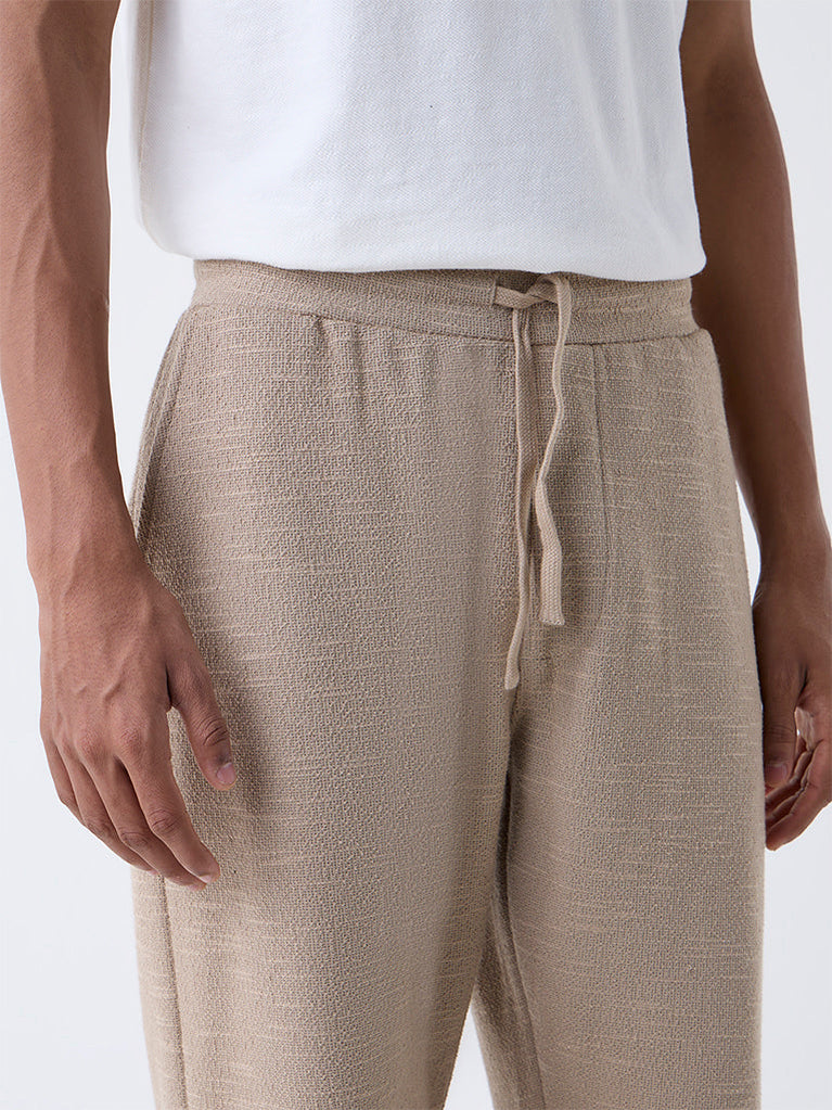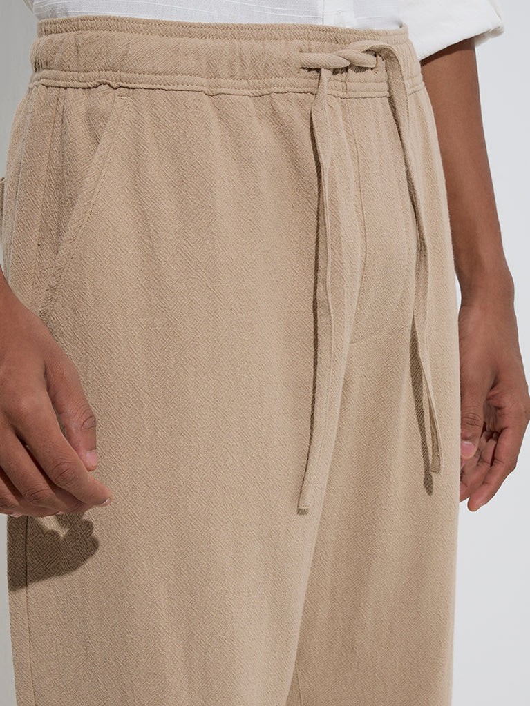 ETA Taupe Textured Relaxed-Fit Mid-Rise Cotton Pants
