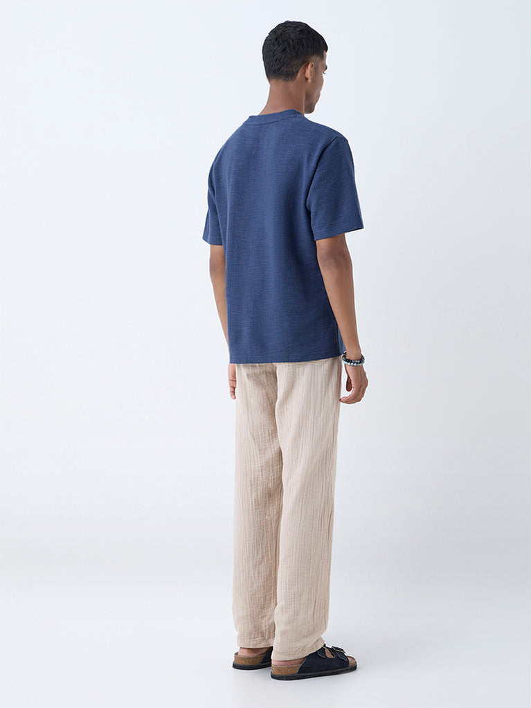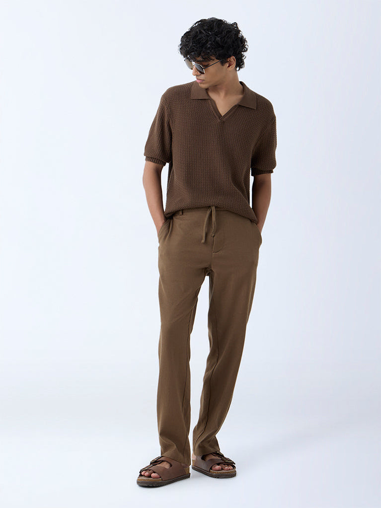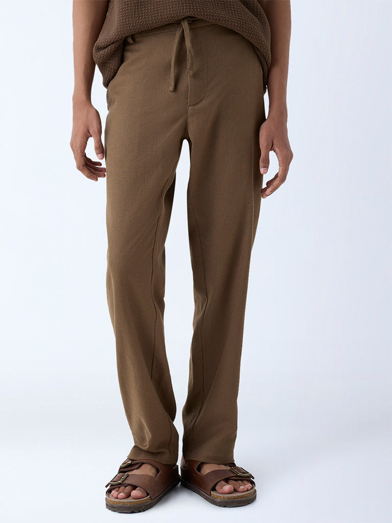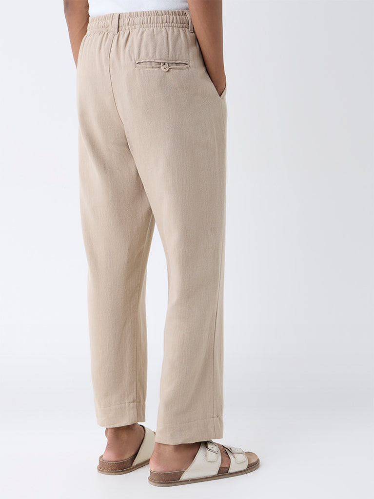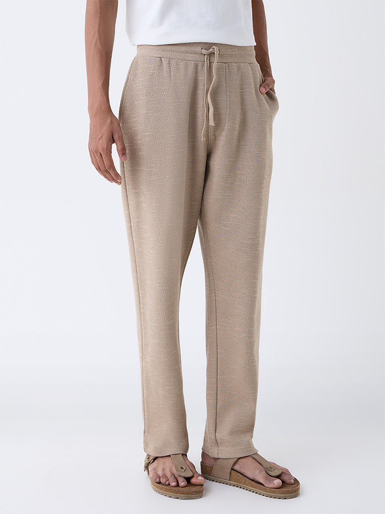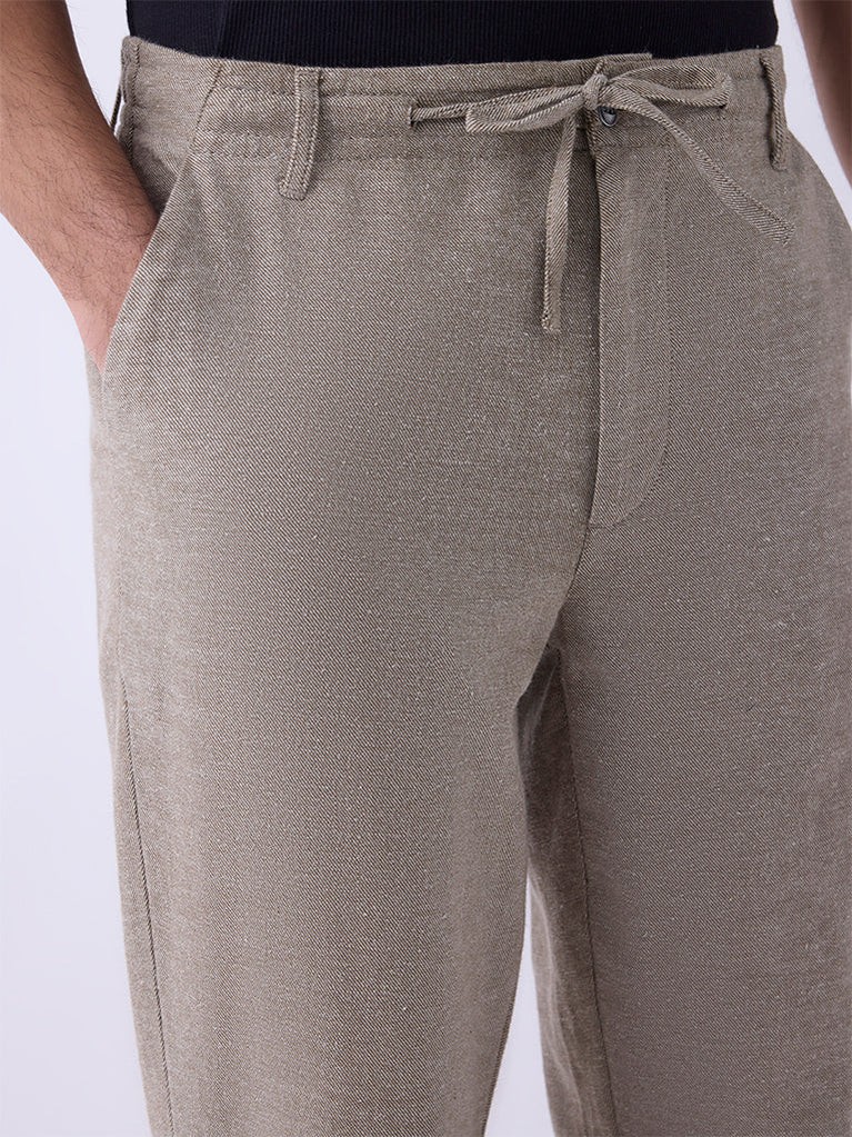 ETA Taupe Textured Relaxed-Fit Mid-Rise Cotton Pants