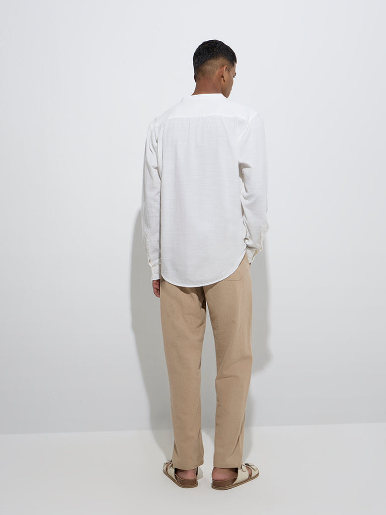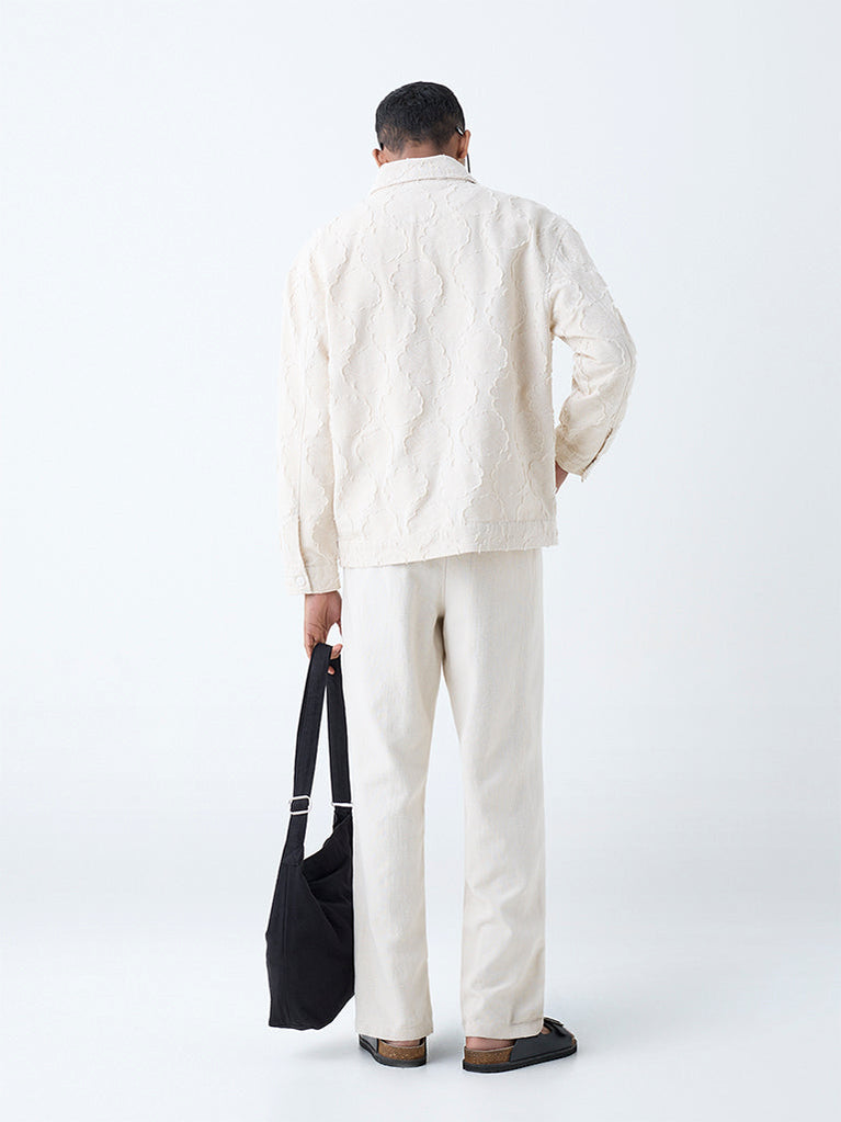 ETA White Textured Relaxed-Fit Mid-Rise Cotton Chinos