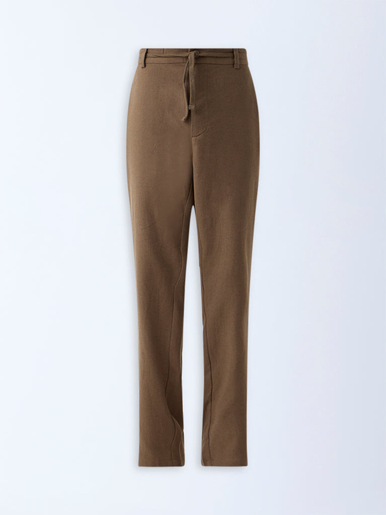 ETA Taupe Solid Relaxed-Fit Mid-Rise Pants