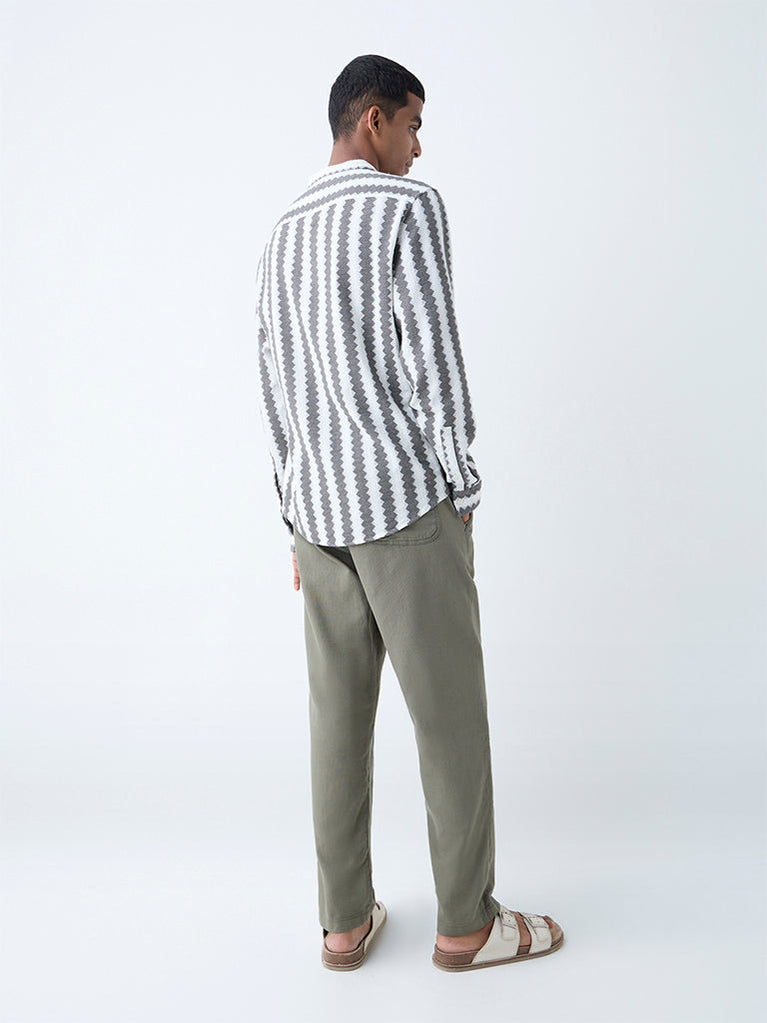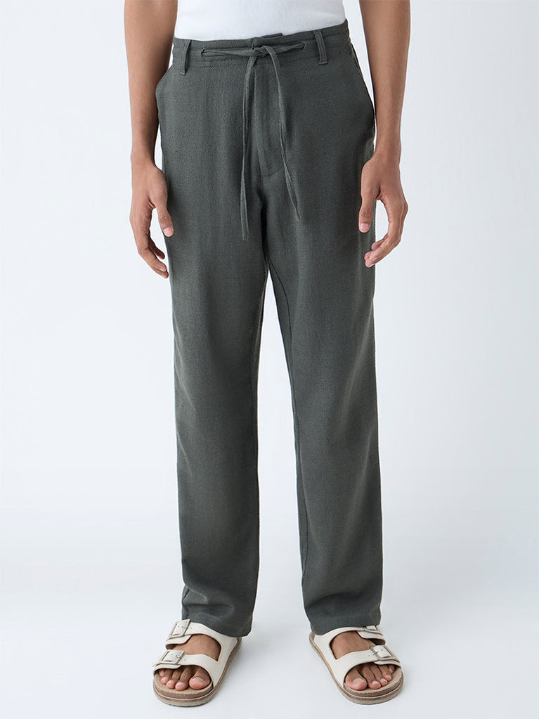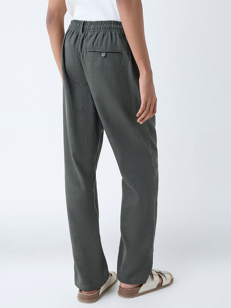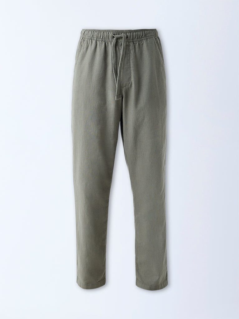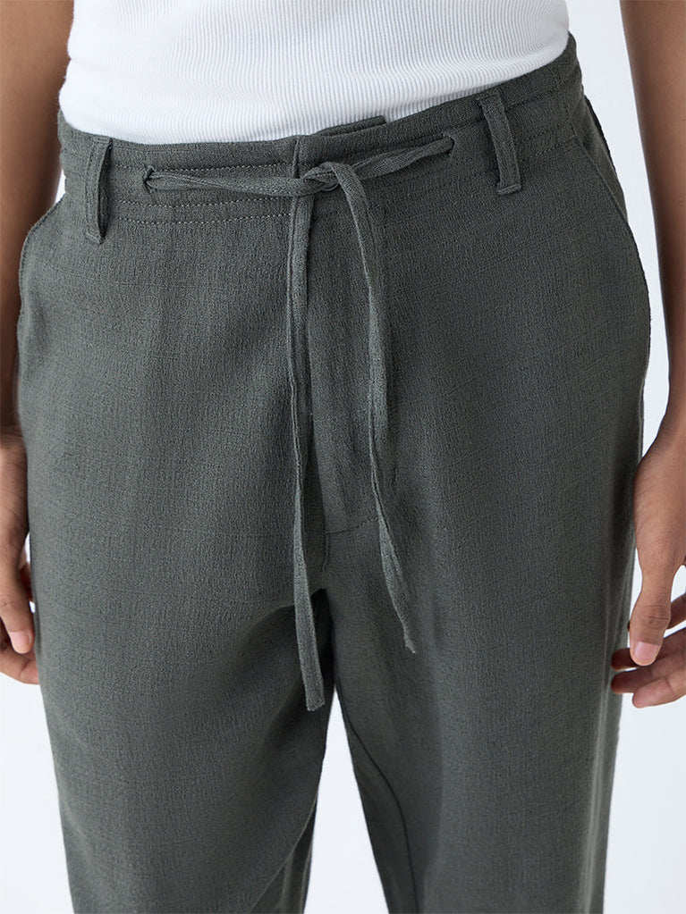 ETA Olive Textured Relaxed-Fit Mid-Rise Cotton Pants