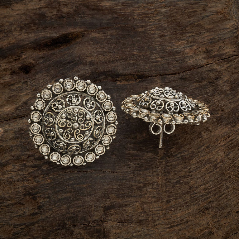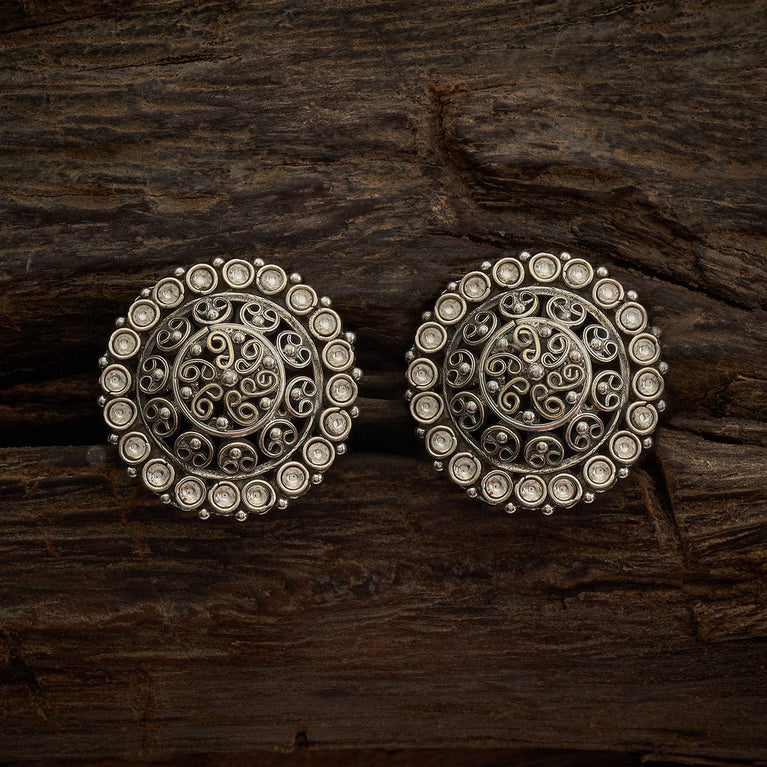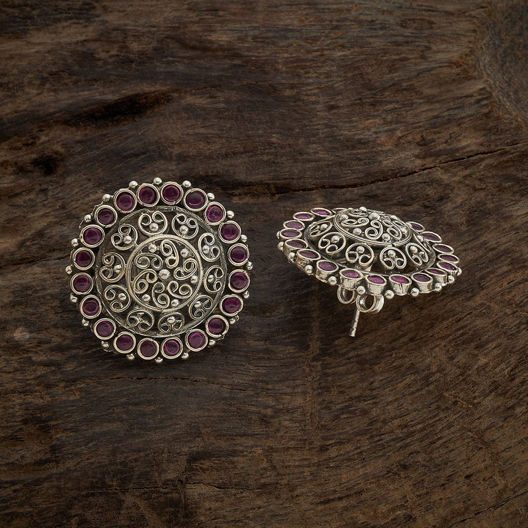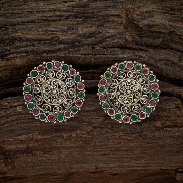 Kushal's Fashion Jewellery 92.5 Pure Silver Flower Motif EarringIf you have enough stud earrings in your collection, we suggest you look at our latest pair of 92.5 silver stud earrings for this festive season. The best part of these earrings is the oxidized silver polish that enhances the beauty of the green and ruby stones in the intricate work details.
