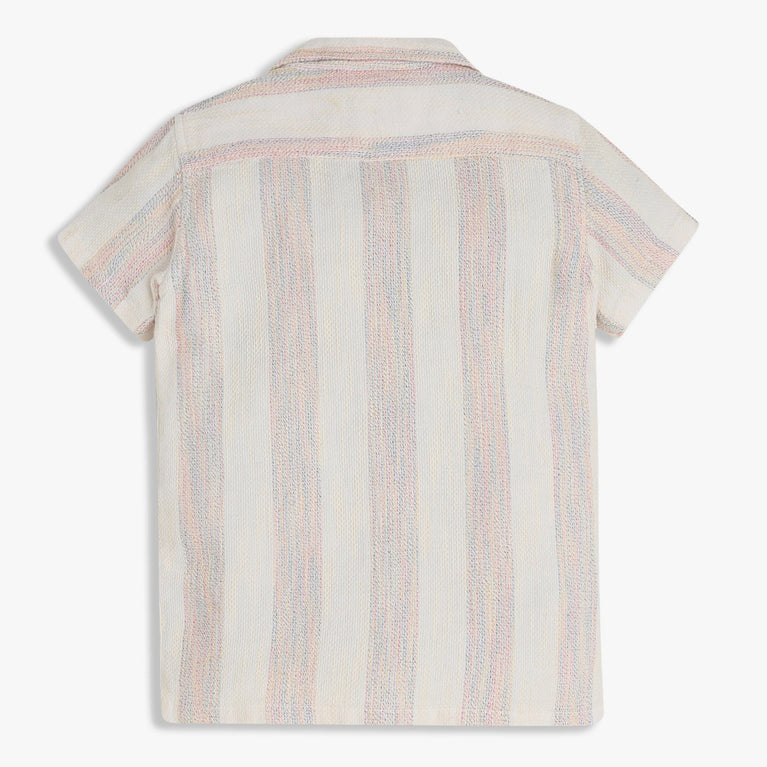 Experience the perfect blend of comfort and style with our Boys Cuban Half Sleeve Shirt. Crafted from 100% cotton, this shirt offers a soft touch against the skin, ensuring all-day comfort for your little one. The classic striped pattern adds a timeless charm, making it a versatile addition to any wardrobe.