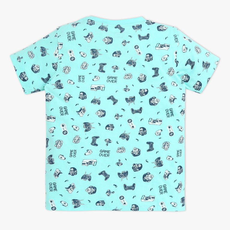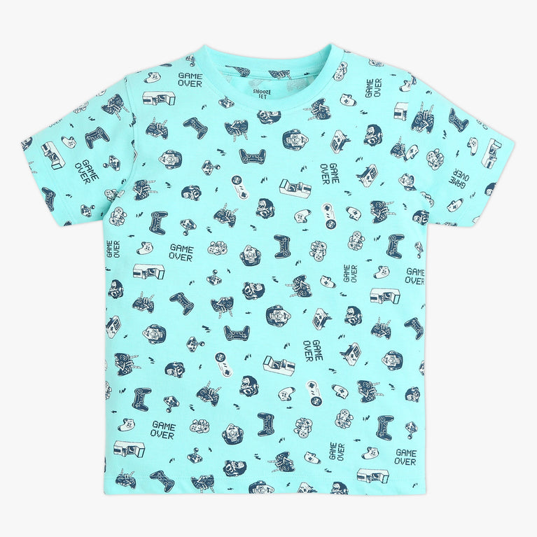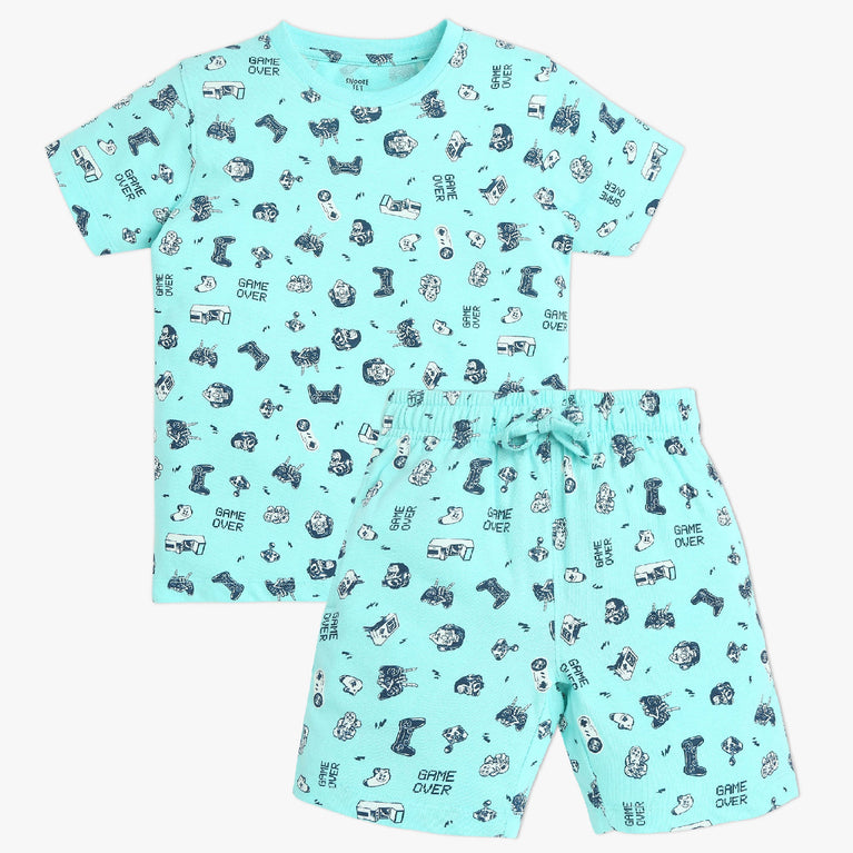 Boys Crew Neck T-shirt and Shorts All Over Printed Sleepwear Set