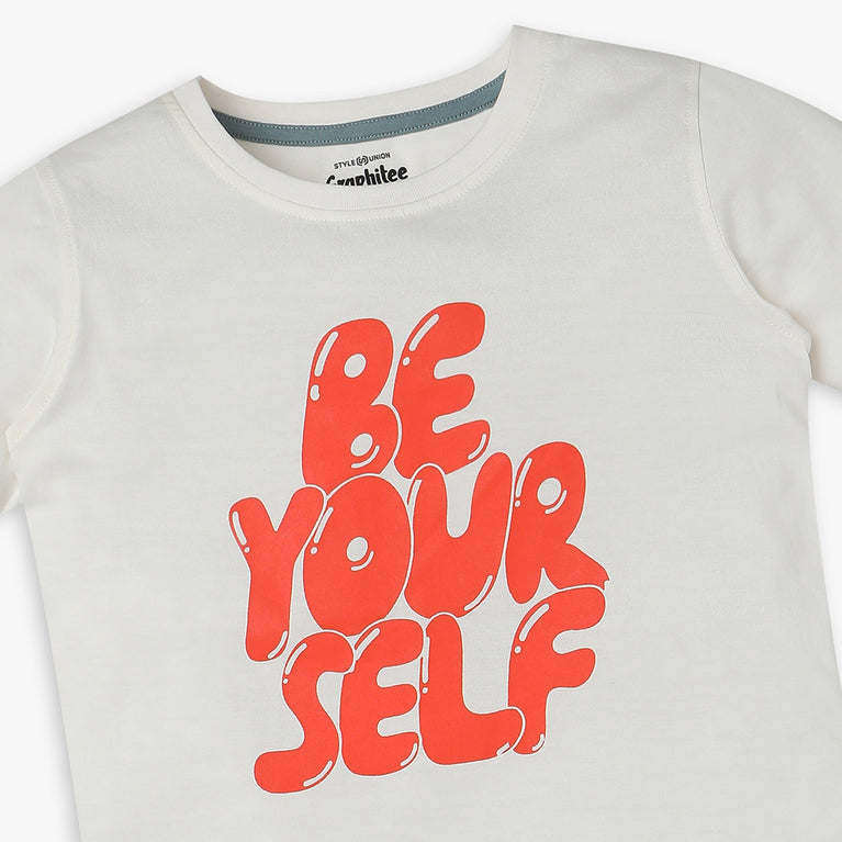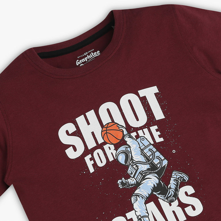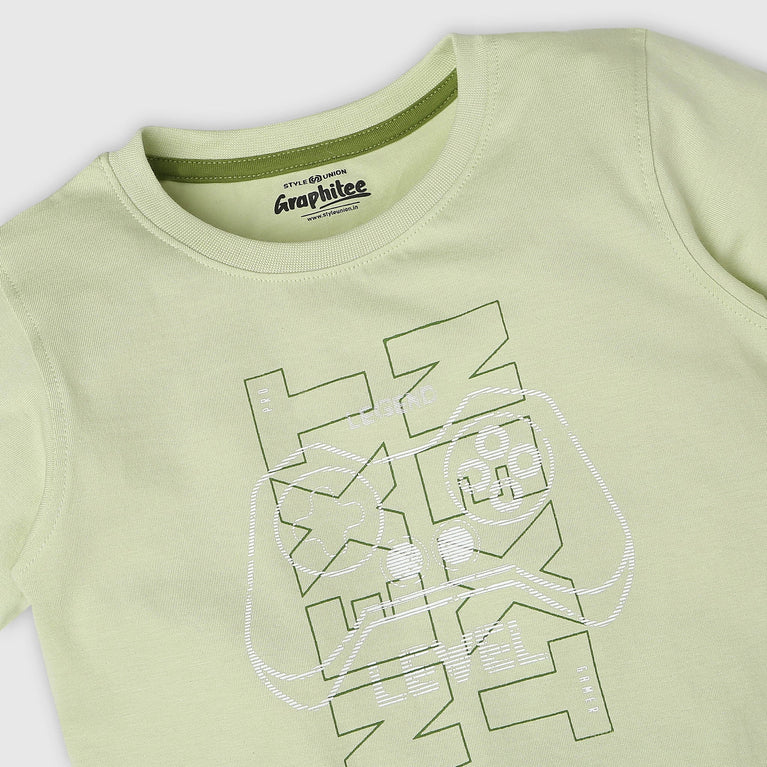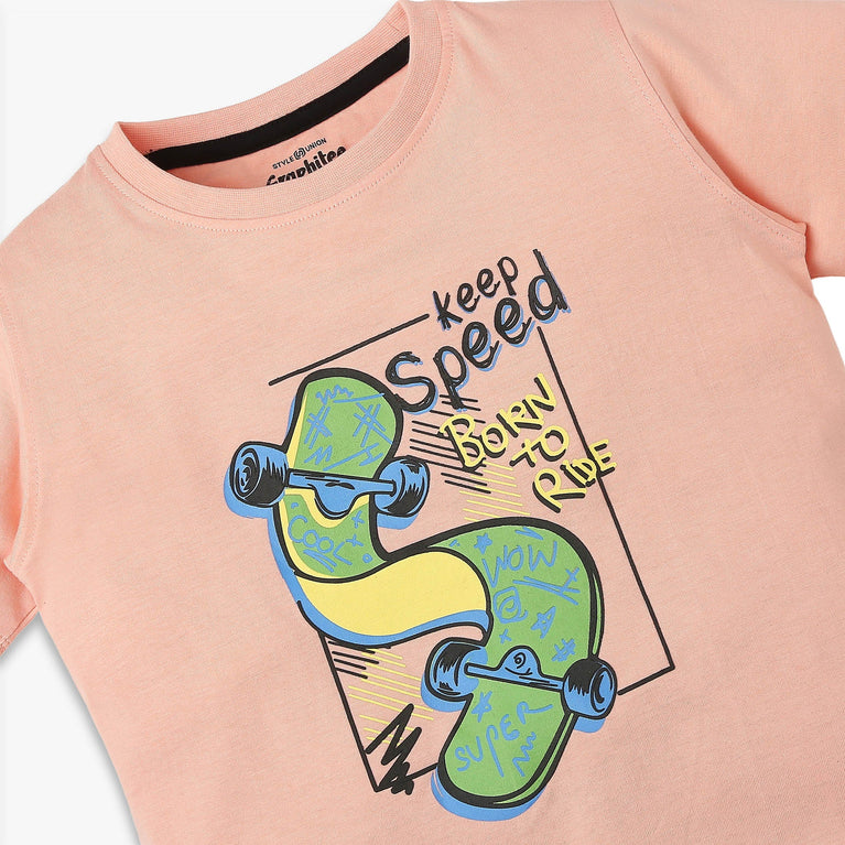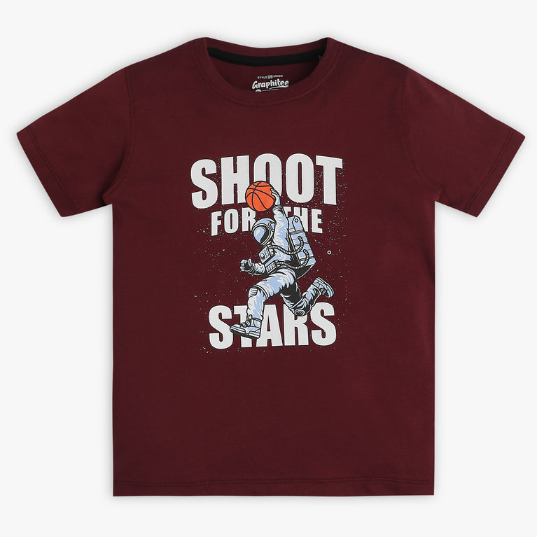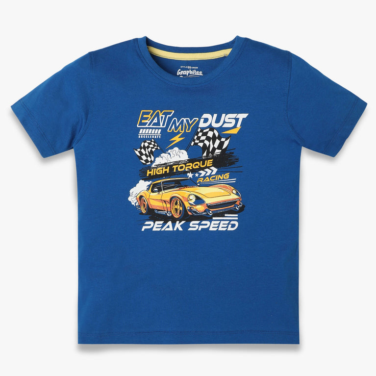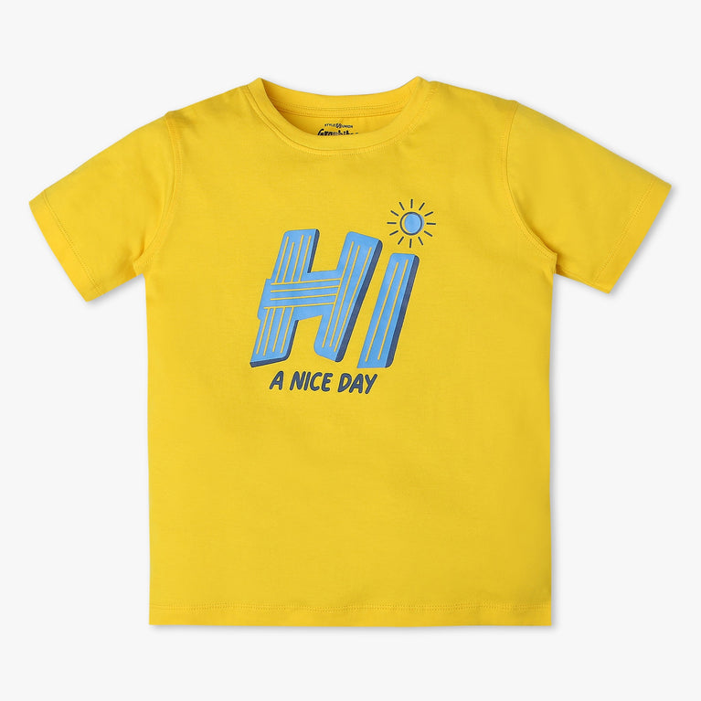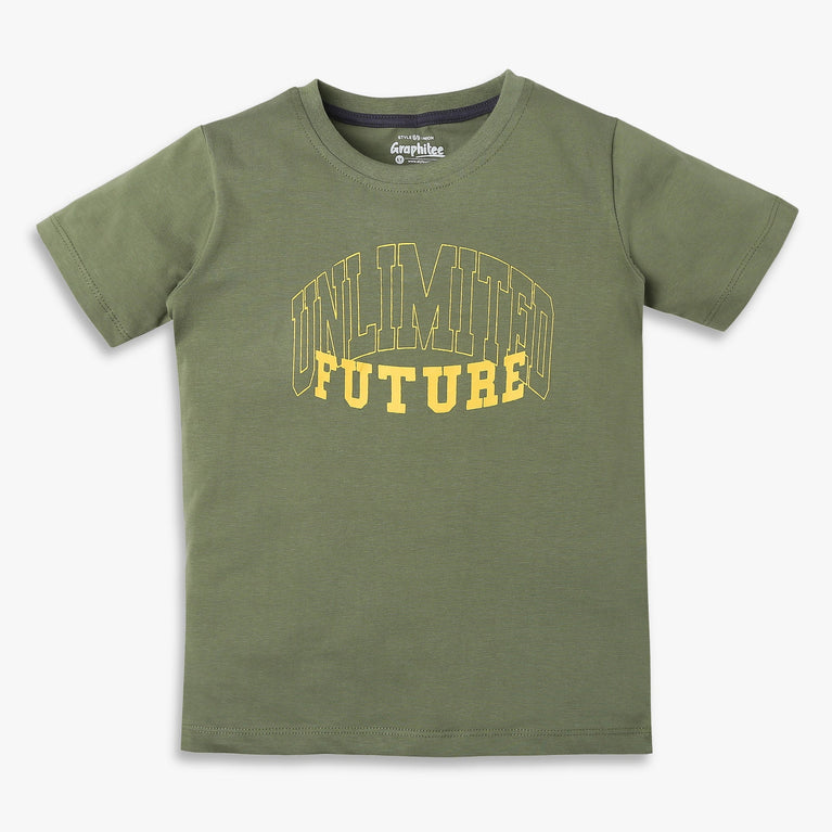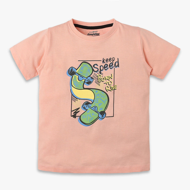 These graphic pattern t-shirt has crew neck and half sleeve. Made from Cotton, your kid's feel comfortable wearing the product.