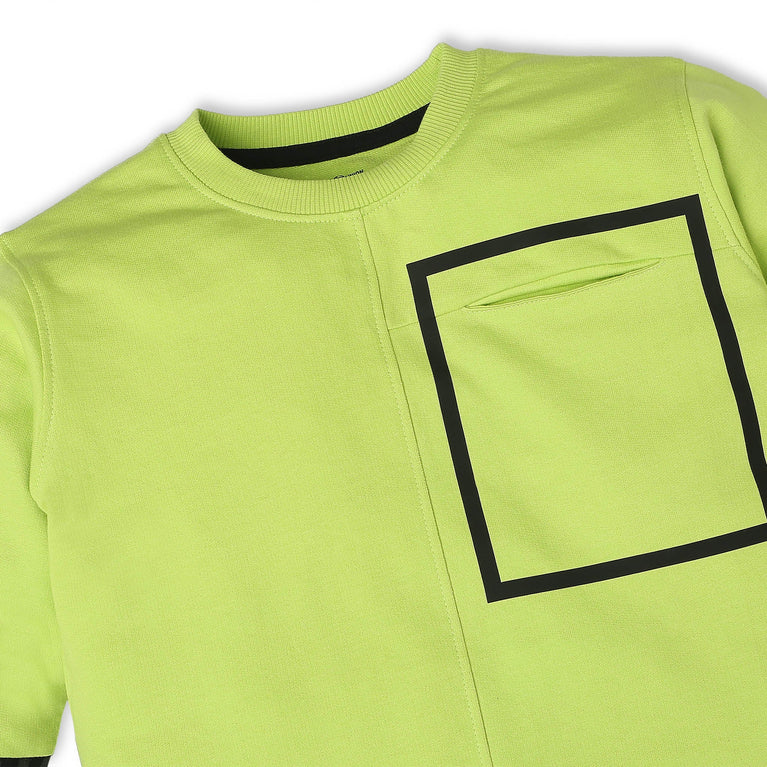These solid pattern t-shirt has crew neck and half sleeve. Made from cotton, your kid's feel comfortable wearing the product.