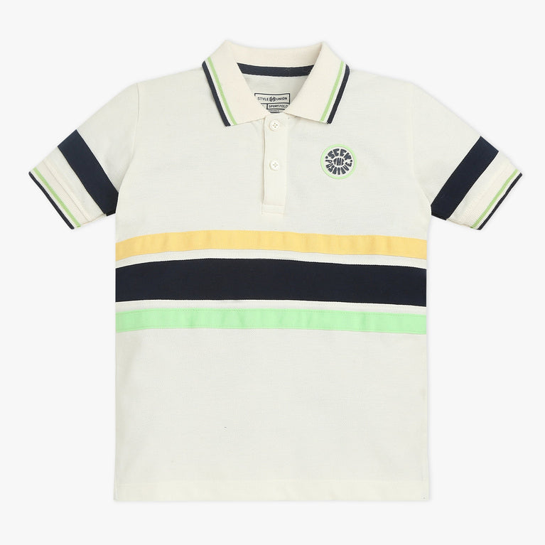 Boys Striped Polo Neck Sports Yarn Dyed T-Shirt