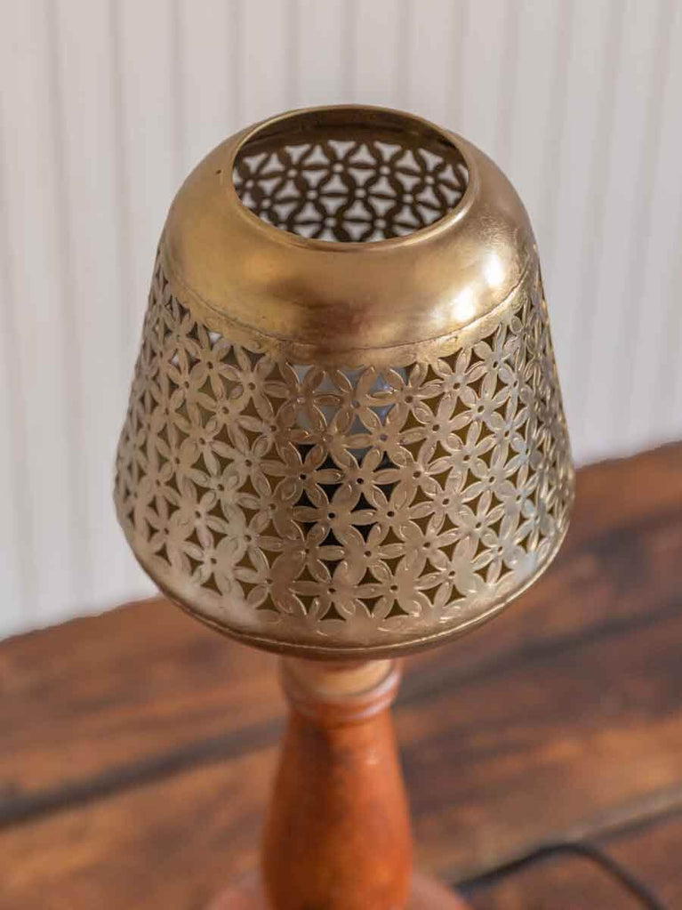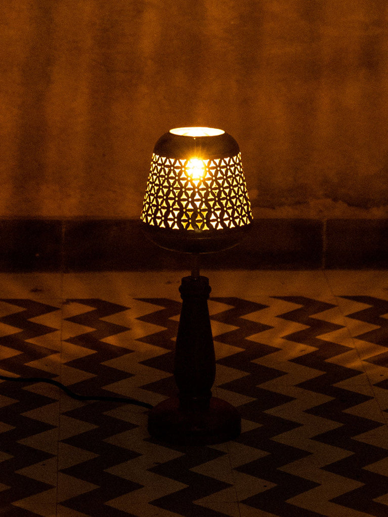 Gazal Metal Cutwork Wooden Base Table Lamp
