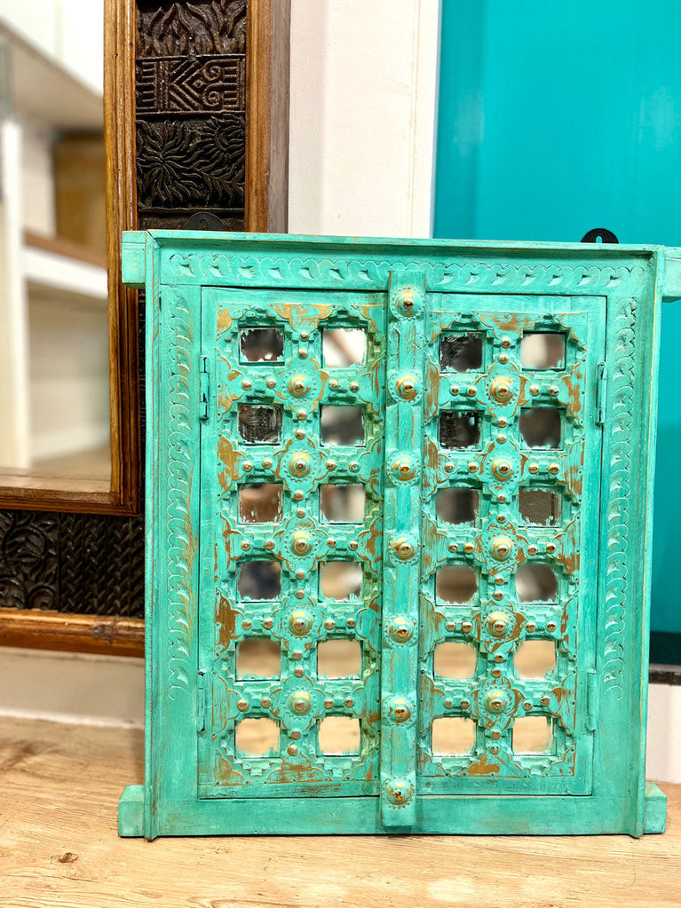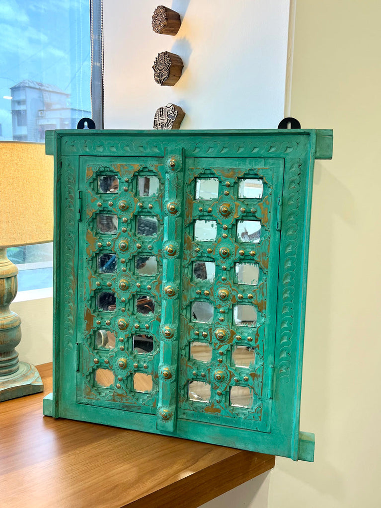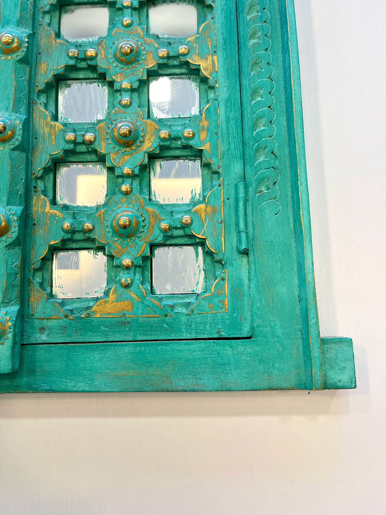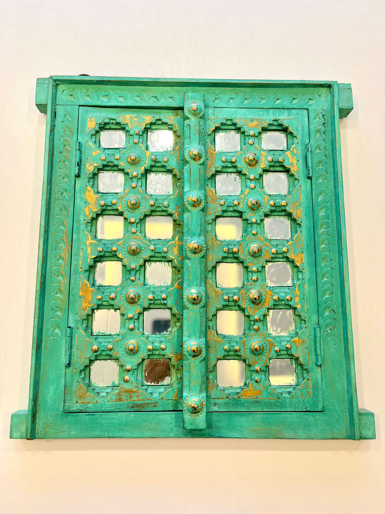 Macha Mint Carved Shekhawati Jharokha Wall Decor