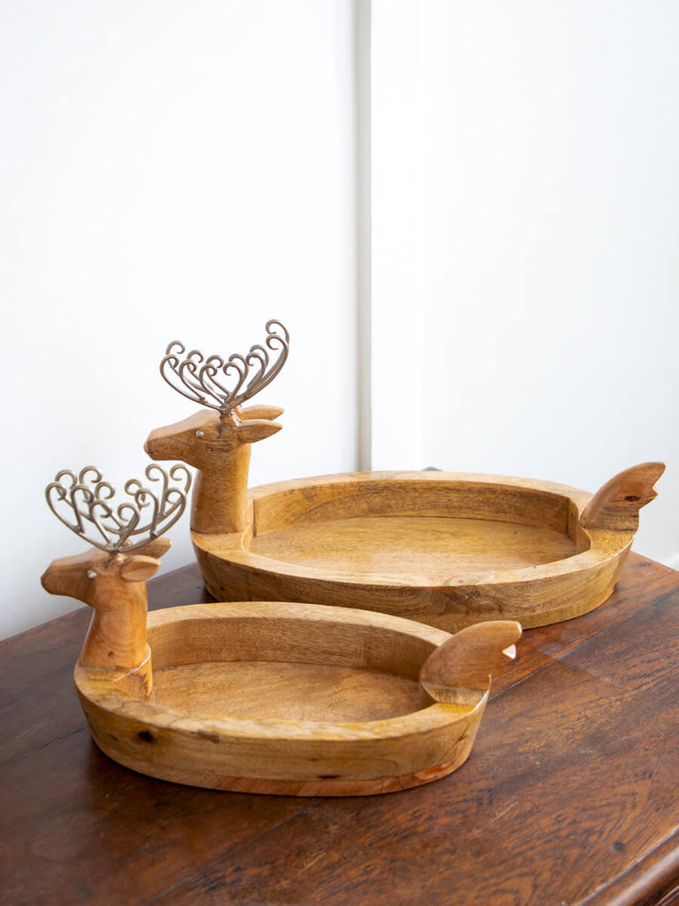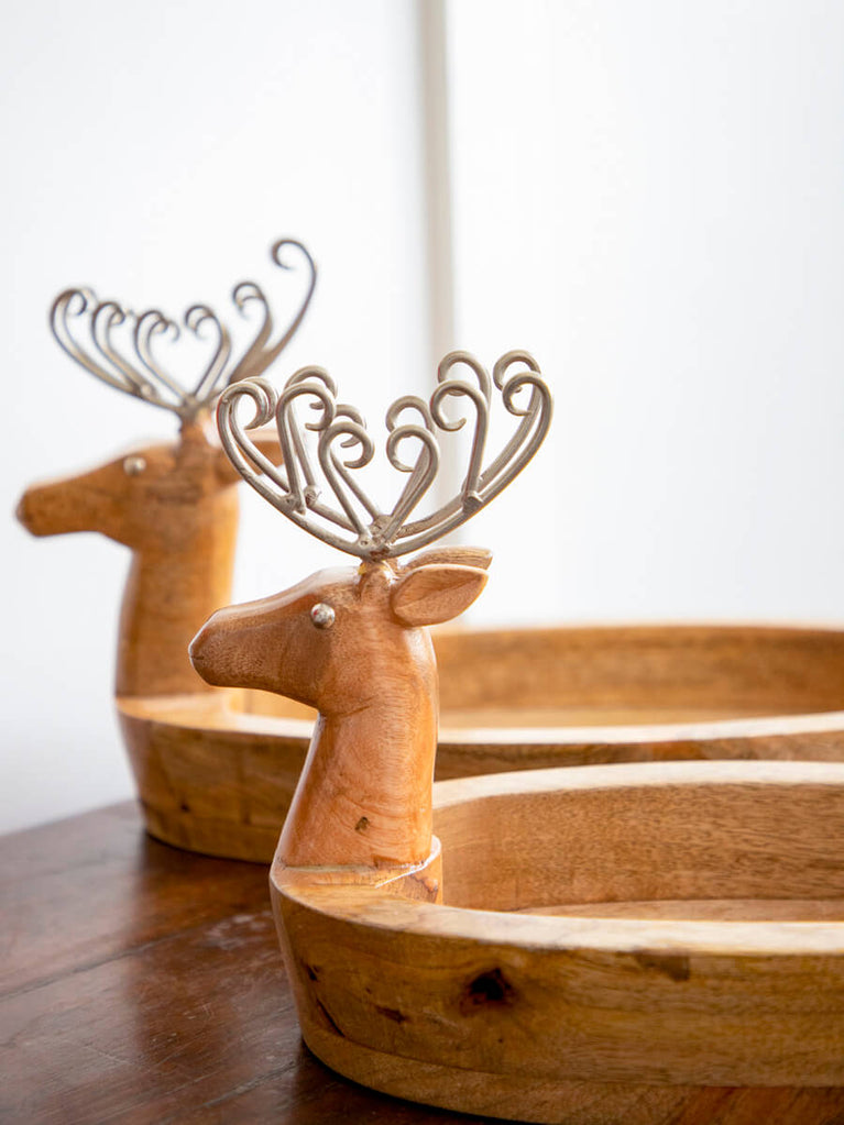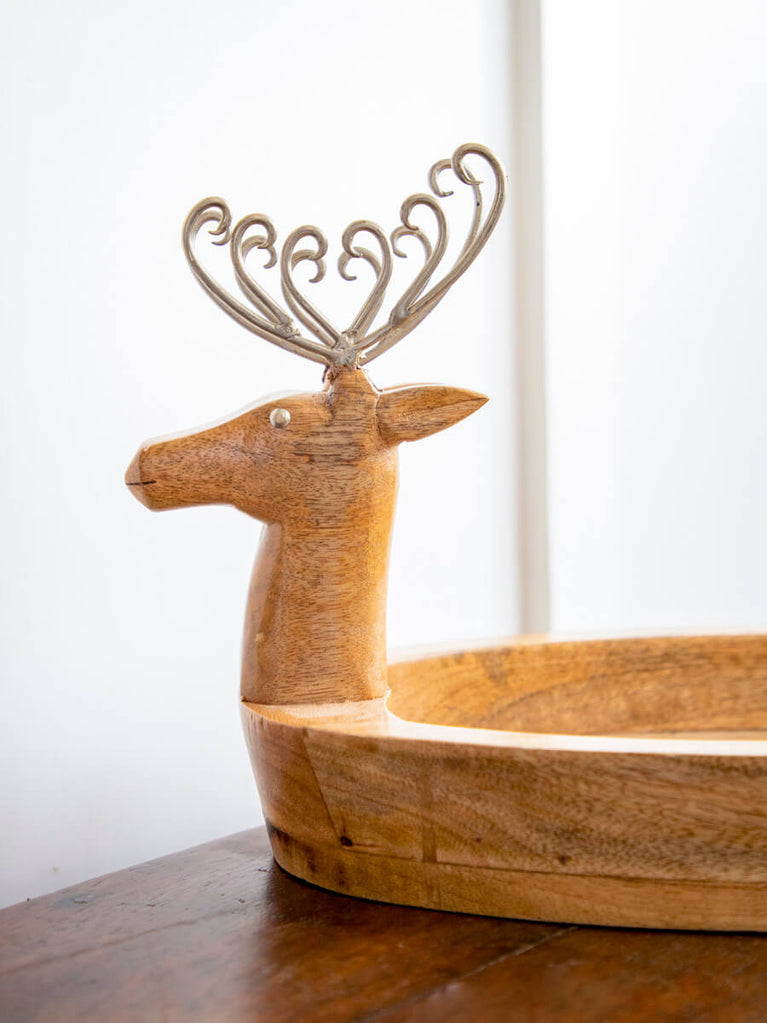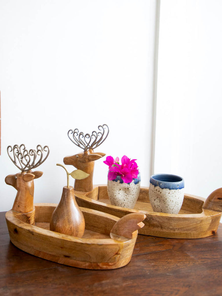 Reindeer Solid Wood Boat Tray - Large