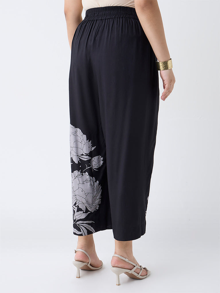 Infused with a nature-inspired charm, these black ethnic pants from Diza feature a botanical print that adds a lively touch. Designed with a smooth elastic waistband and adjustable drawstrings, they ensure a secure yet comfortable fit for all-day ease.