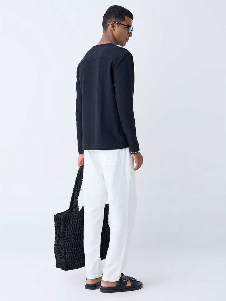 ETA Black Knit-Textured Relaxed-Fit Cotton T-Shirt
