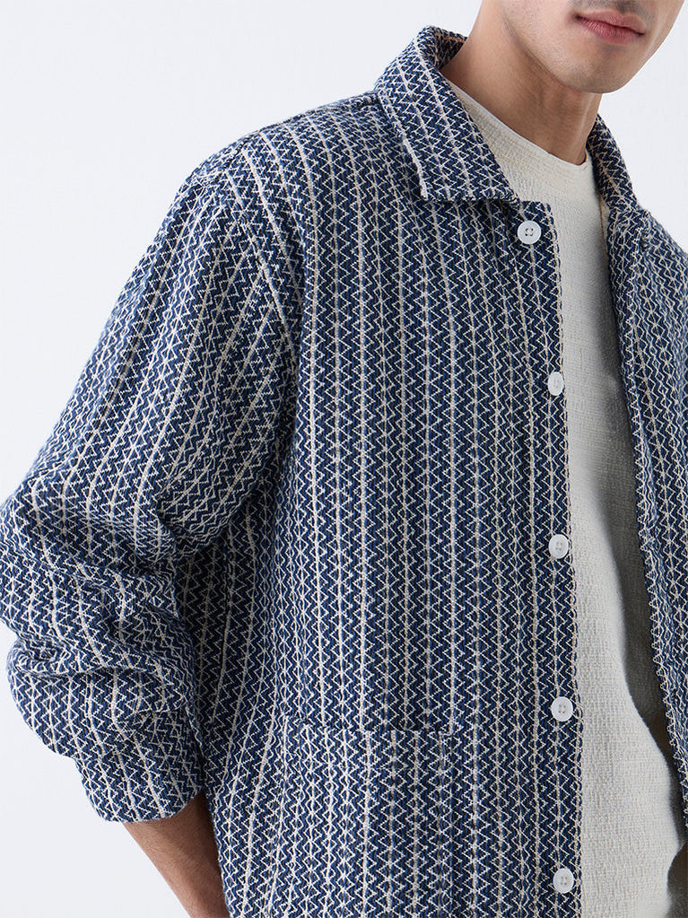 ETA Grey Woven-Textured Relaxed Fit Cotton Jacket