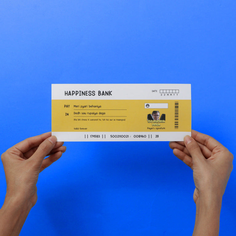 This Rakhi, let the gift be priceless… and also totally useless. A prank cheque with all the drama and none of the digits. Surprise (or shock) your sister with this funny rakhi gift and make her laugh her heart out.