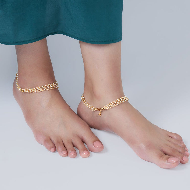 Minute details making this piece top the charts, style your outfit with this pair of payal made from gold. The enchanting look of this payal is famous because of the fine patterned design and detailing.