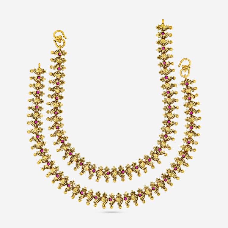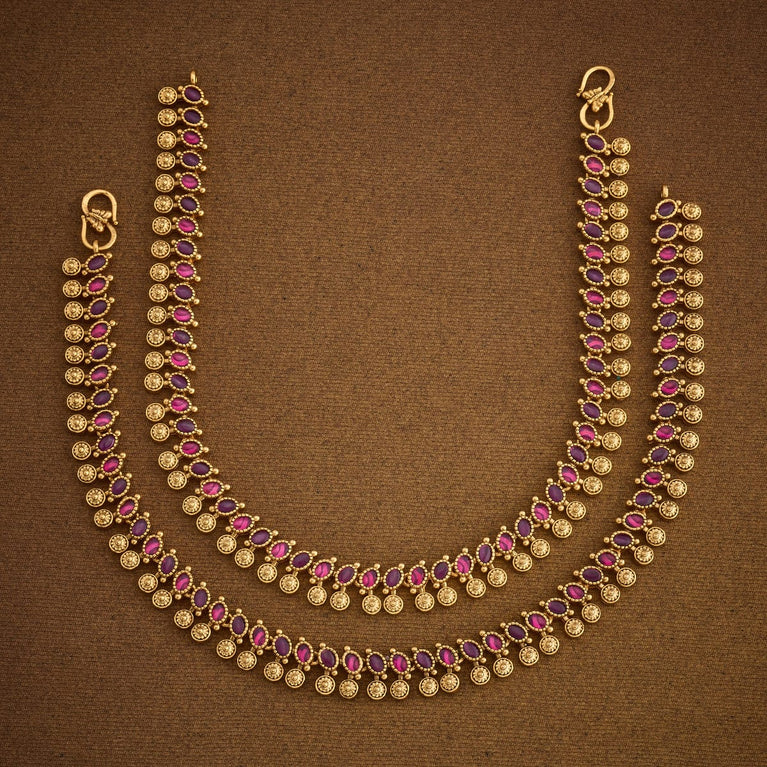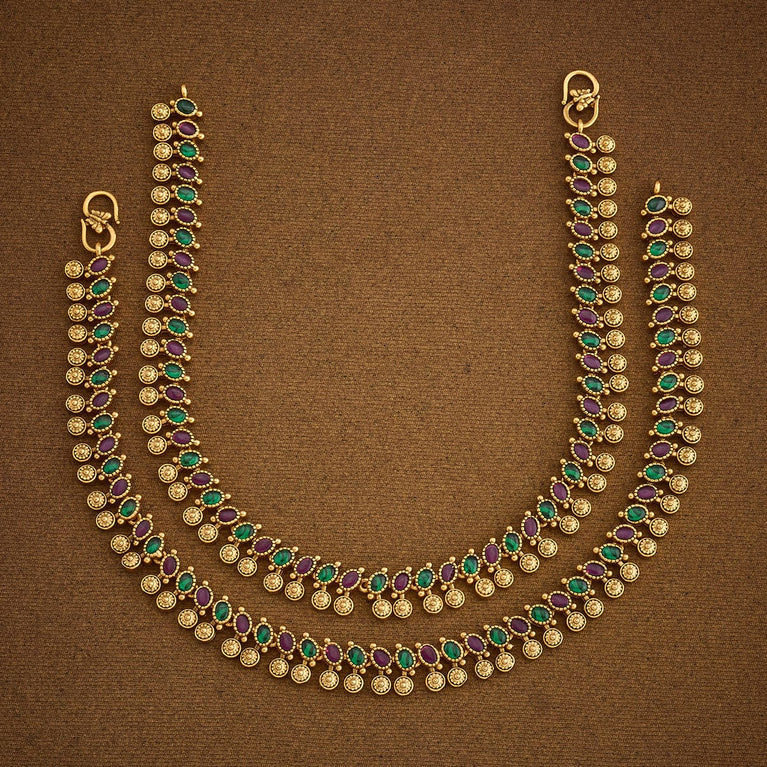 Kushal's Fashion Jewellery Antique TikkaA magnificent Tikka can make your outfit go from bland to eye-catching, which is why we present our latest antique Tikka. The best part of this Tikka is the gold polish that compliments the shine of the ruby, green, and ruby-green stones used in it. Wear it with your favourite outfit.