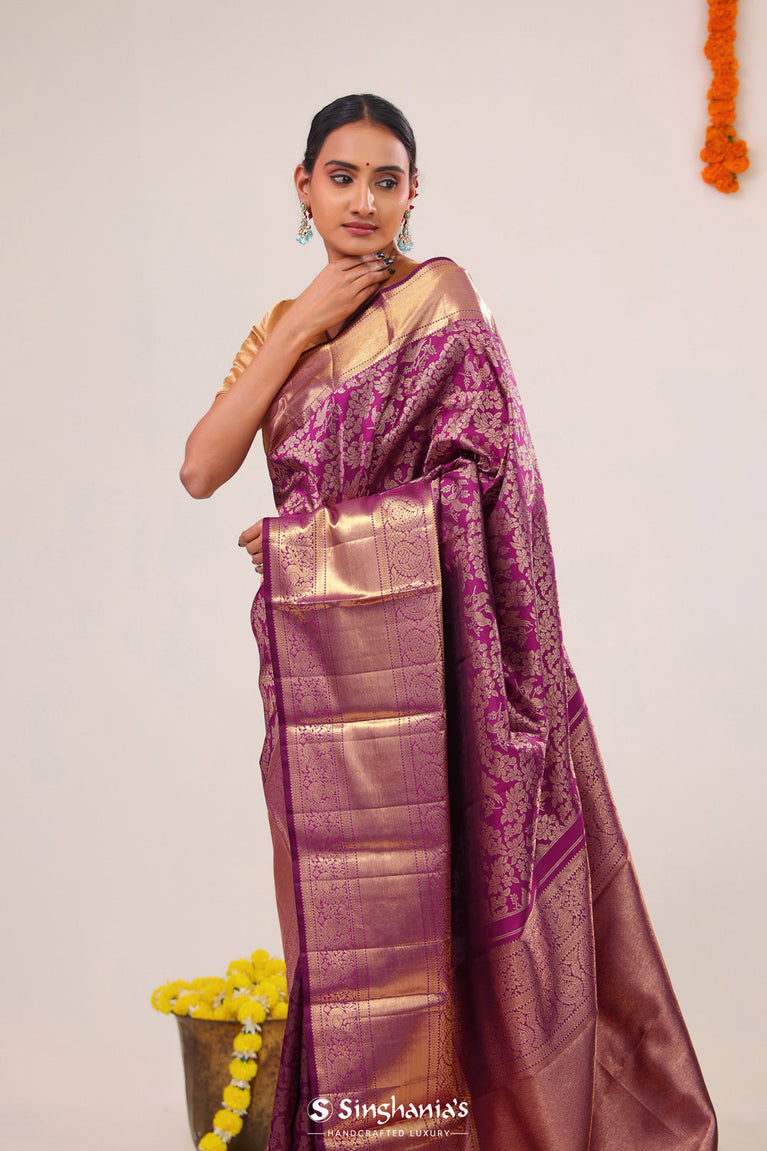 Dark Magenta Purple Kanjivaram Silk Saree With Floral Jaal Weaving