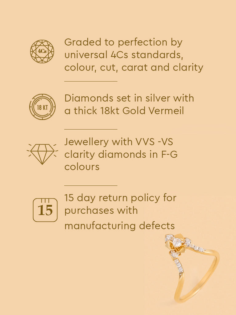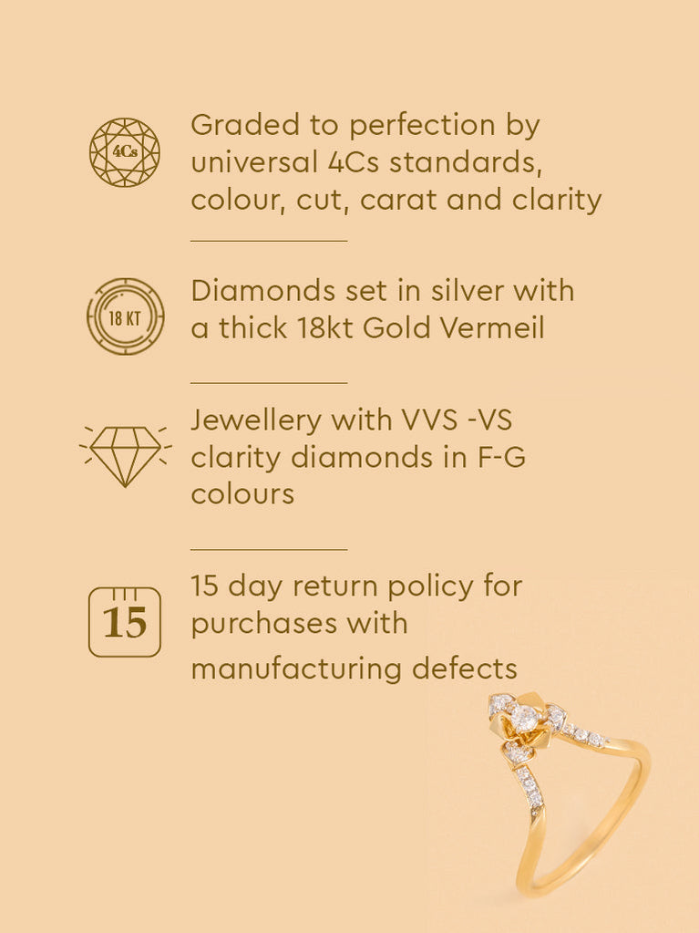 This gold floral solitaire ring from Westside X Pome features a delicate floral motif with a polished gold-tone band. A clear central stone sits at the heart of the design, complemented by small leaf-shaped accents along the band, each adorned with clear stones. With its slender profile and subtle detailing, this piece brings a refined touch to both everyday wear and special occasions.