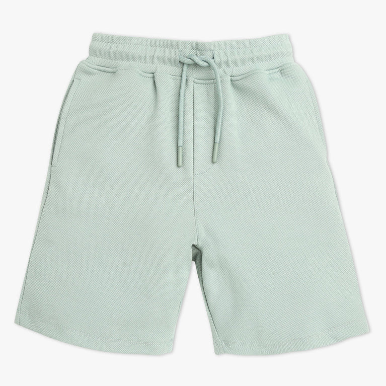 Experience the ultimate in comfort and style with our Knitted Cotton Core Shorts. Crafted from 100% cotton, these shorts offer a soft and breathable feel, perfect for active boys who love to play and explore. The solid pattern and knee-length design make them versatile for any occasion, whether it's a day at the park or a casual outing.