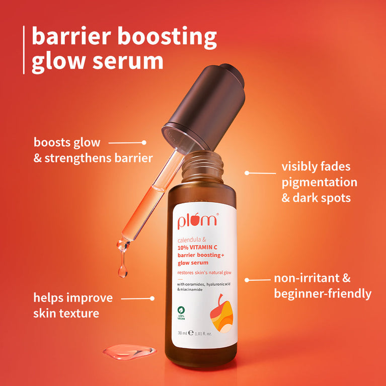 10% vitamin C face serum with calendula, 30ml:* clinically proven to boost glow from 1st use * strengthens barrier & reduces dark spots in 14 days* dermat-tested* lightweight & quick-absorbing * made with 10% vitamin C, 3% niacinamide, 1% ceramide complex, 1% hyaluronic acid & calendula