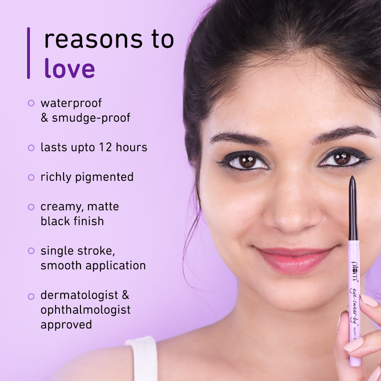 *creamy glide, single stroke application *matte black, richly pigmented *smudge-proof & water-proof *lasts up to 12 hours