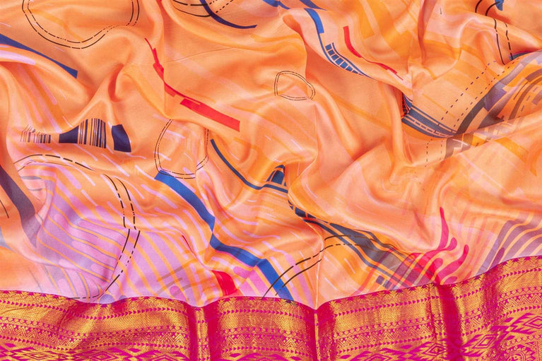 Mandir Peach & Pink Kanchi Printed Saree