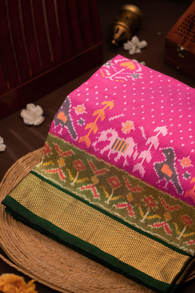 Mandir Pink & Pink Patola Buttis Saree