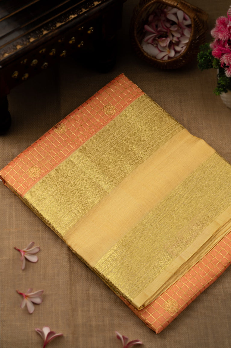 Mandir Peach & Sandy Brown Uppada Checks And Buttis Saree