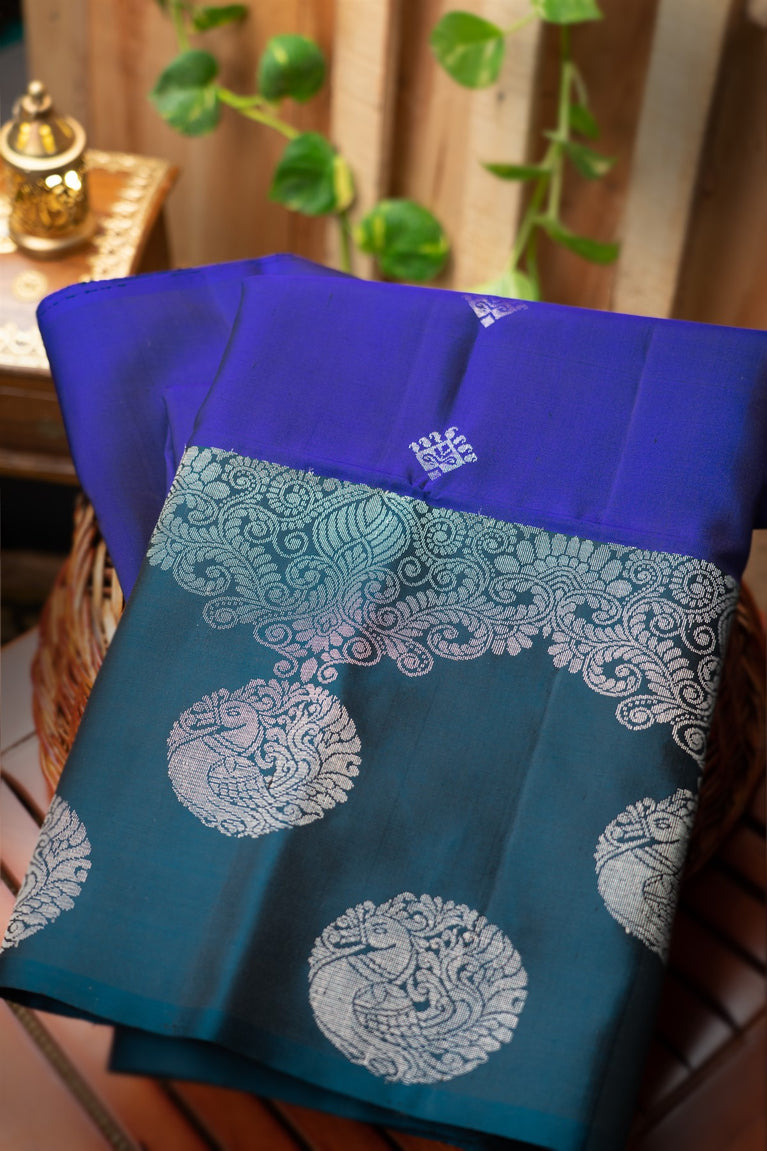 Mandir Royal Blue & Peacock Green Coimbatore Buttis Saree