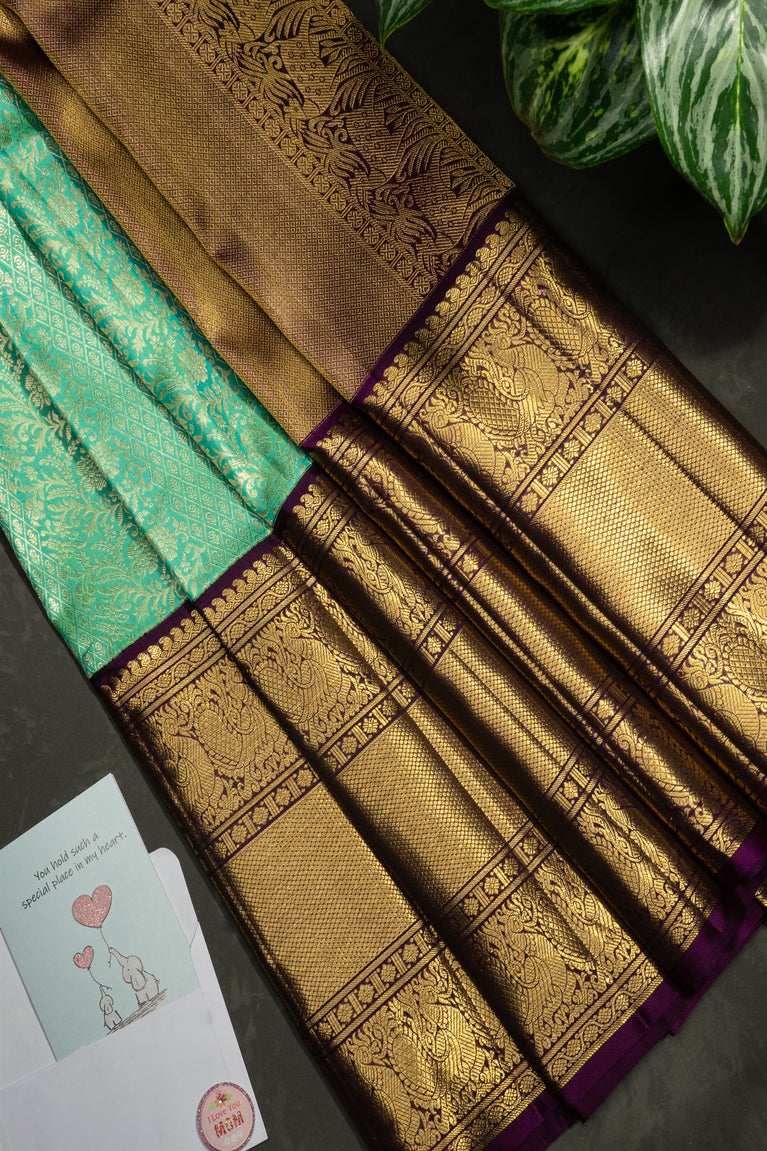 Mandir Sea Green & Gold Gadwal Buttis Saree