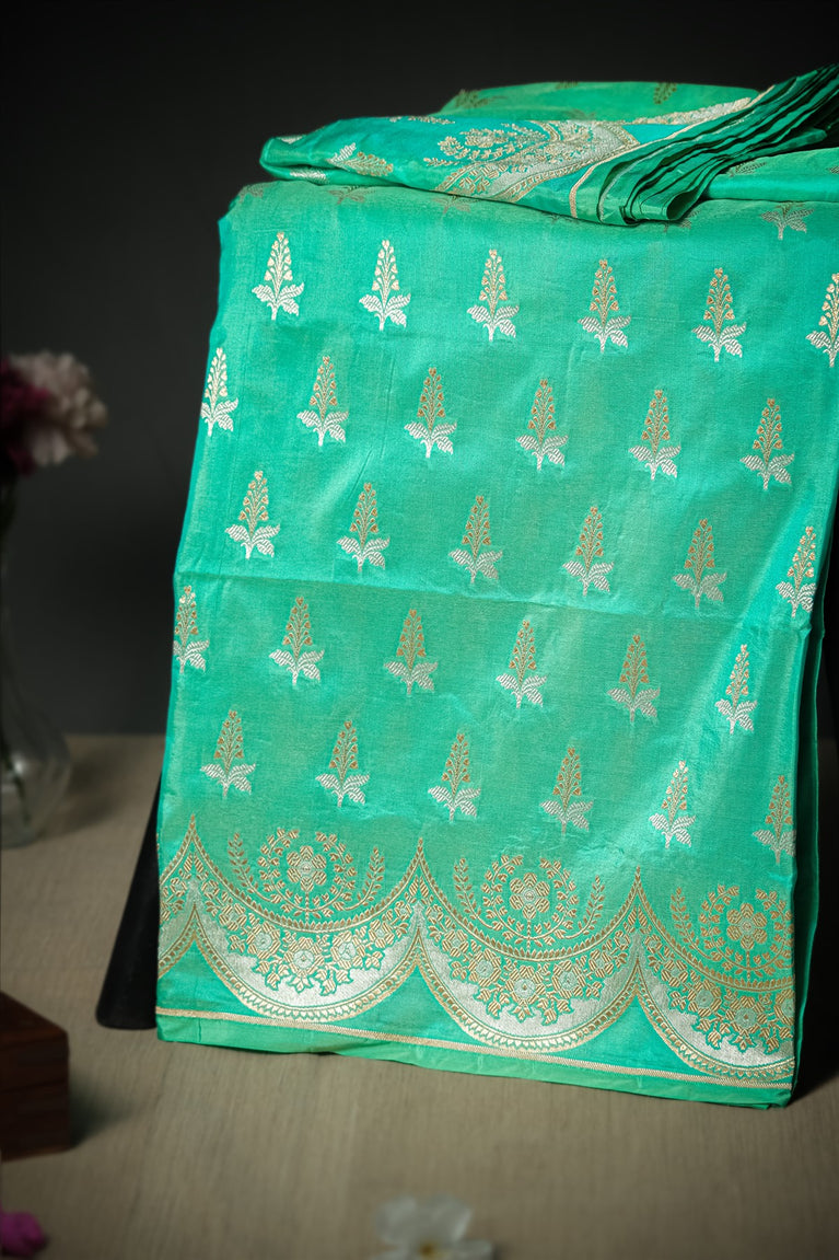 Mandir Sea Green & Teal Banarasi Buttis Saree