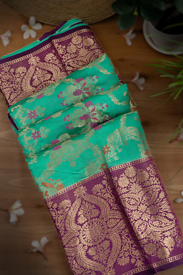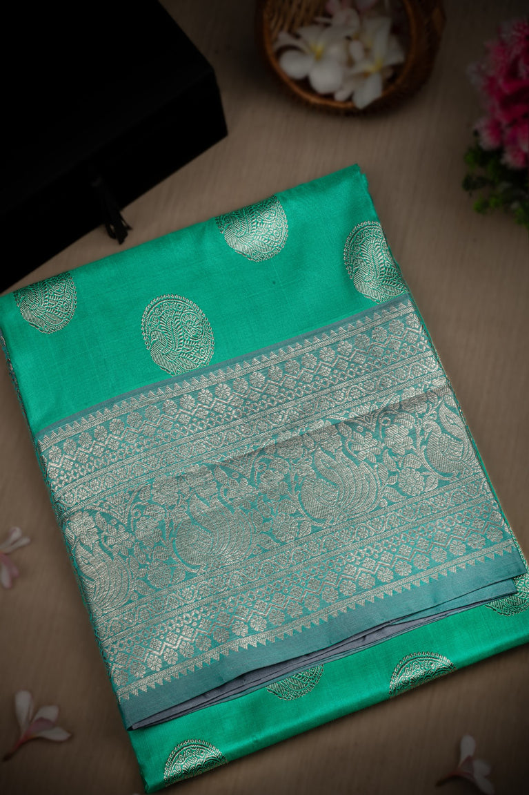 Mandir Sea Green & Light Grey Venkatagiri Motifs Saree