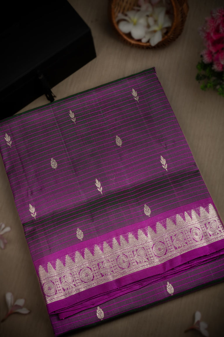 Mandir Space Grey & Purple Venkatagiri Buttis Saree